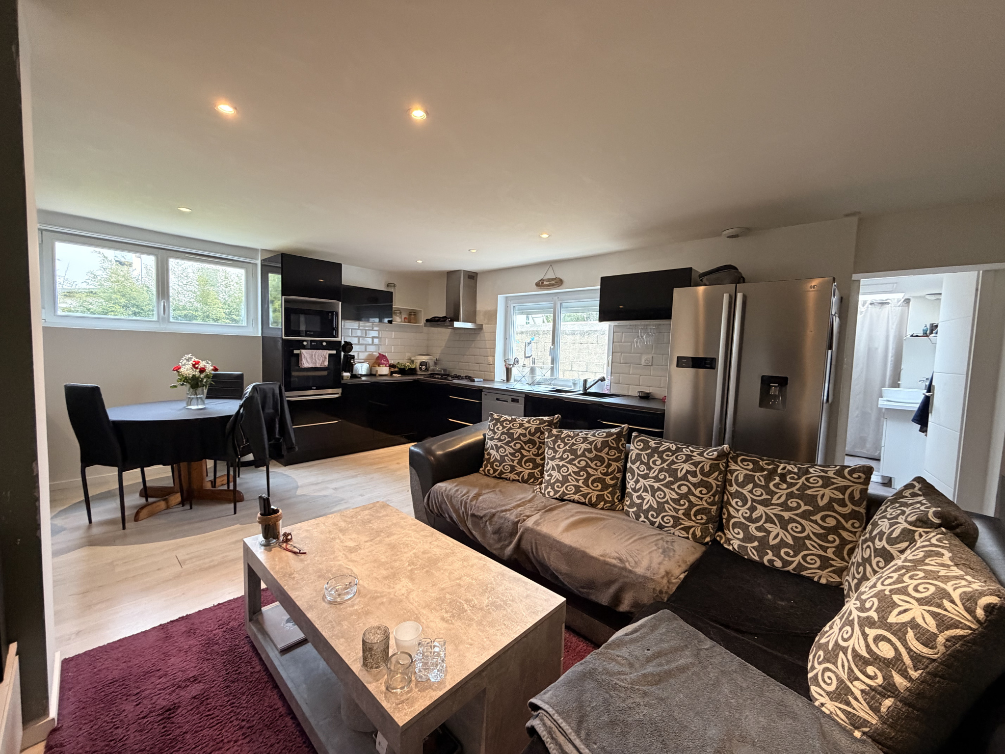Belle pièce de vie de 32 m2 avec cuisine ouverte, véranda de 18 m², buanderie, deux chambres, salle d'eau et W...