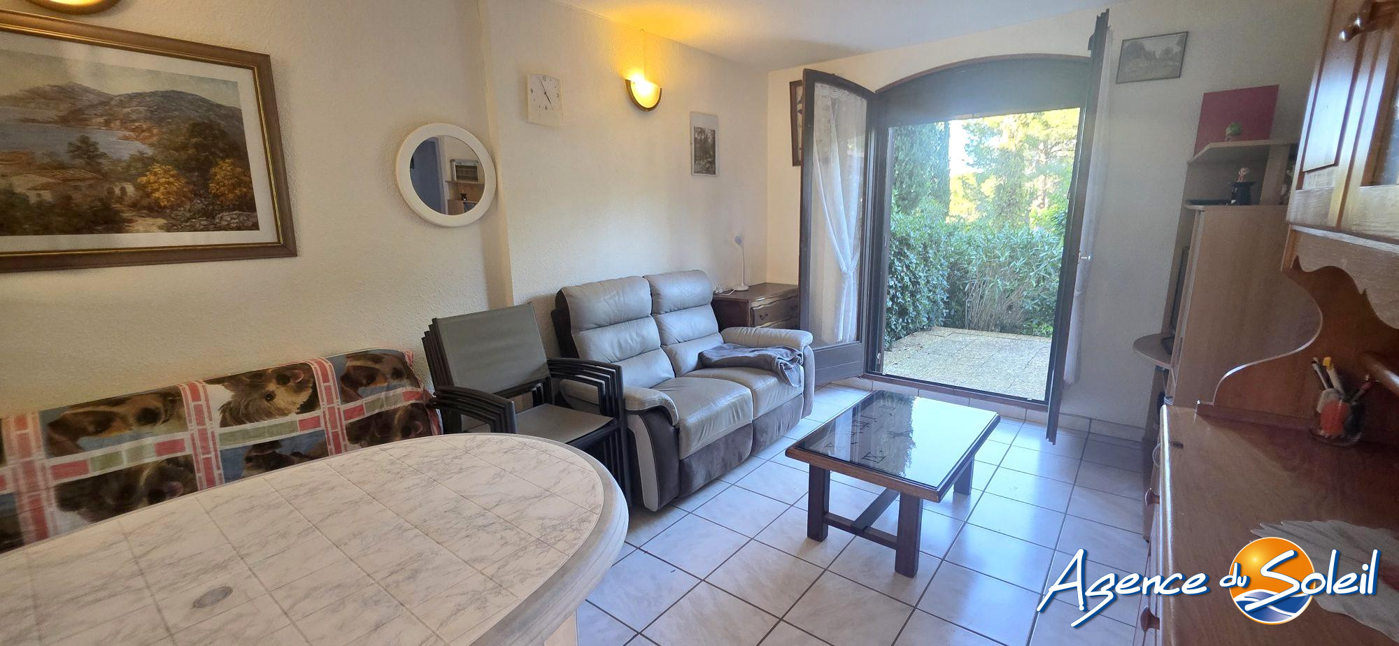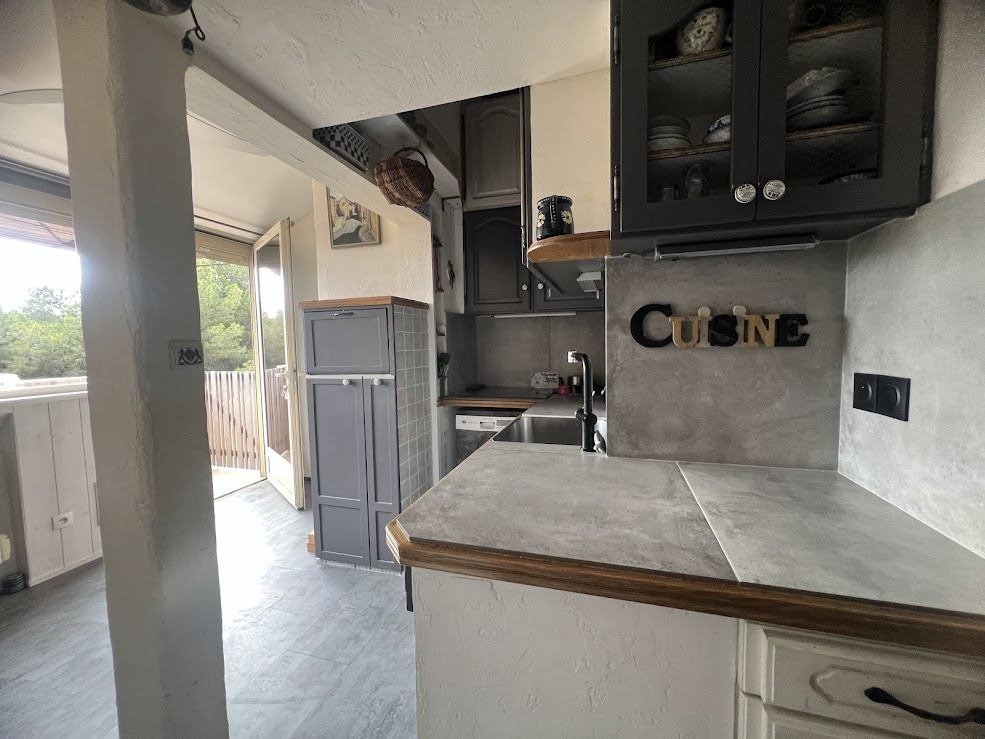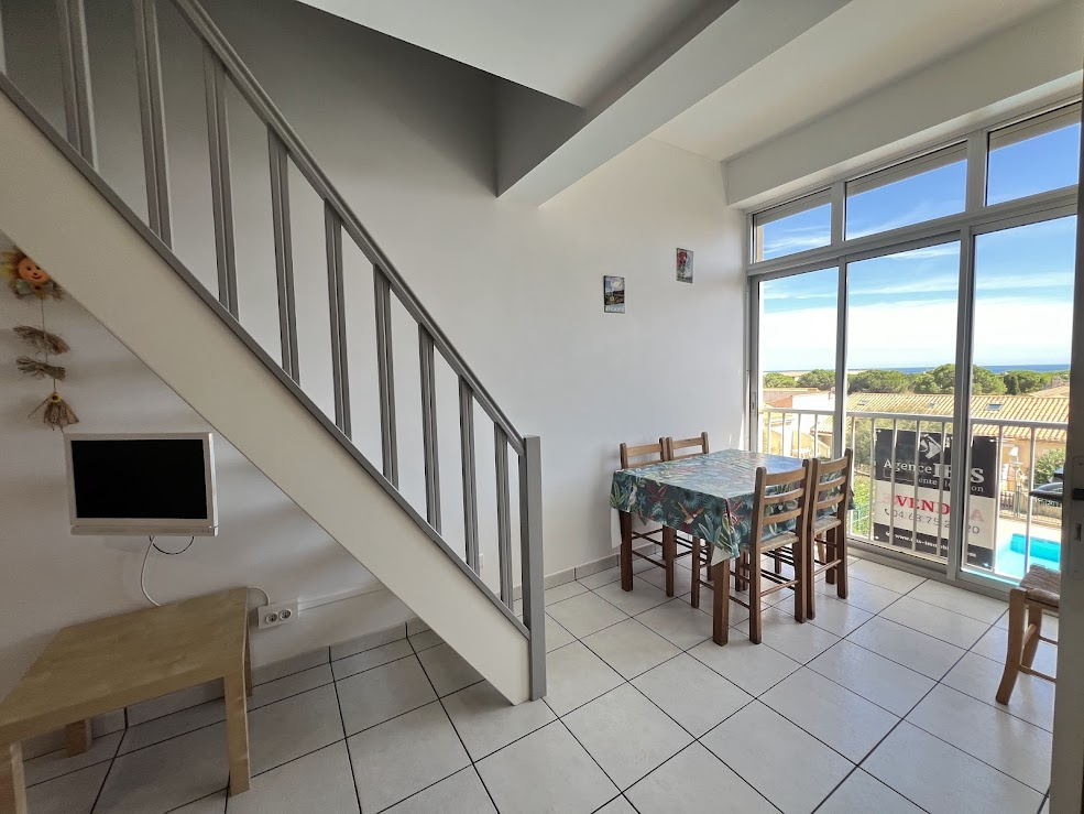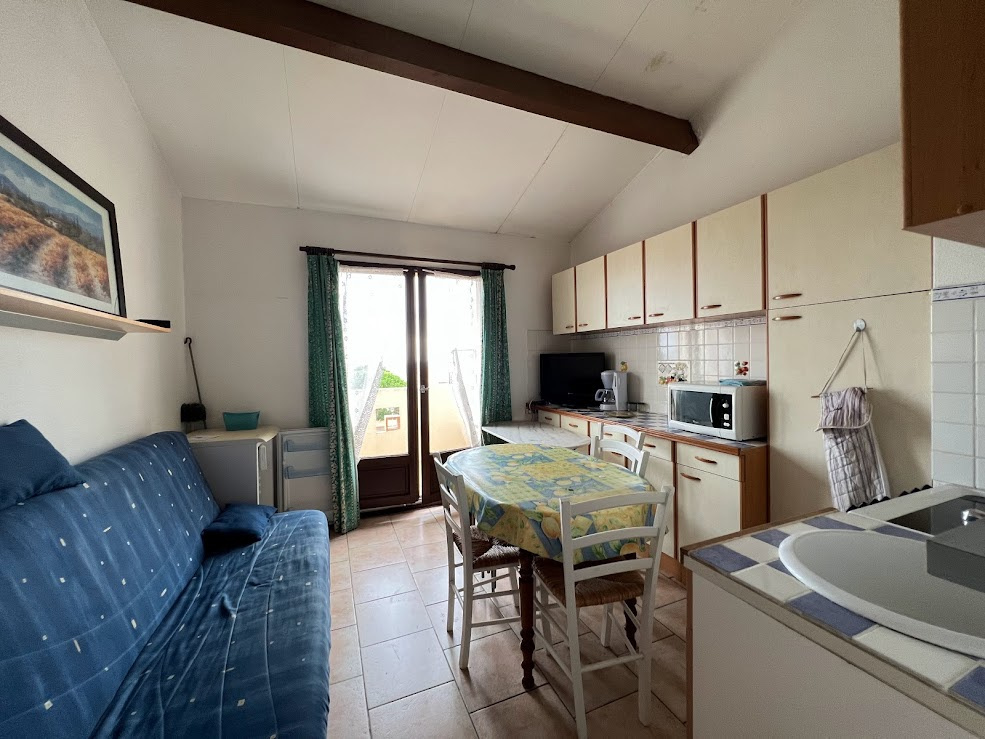 Situé sur une résidence sur les hauteurs de St Pierre la Mer et à proximité de la garrigue, cet appartement se compose d'un séjour avec cuisine équipée, une chambre, salle d'eau avec douche et wc incorporé.