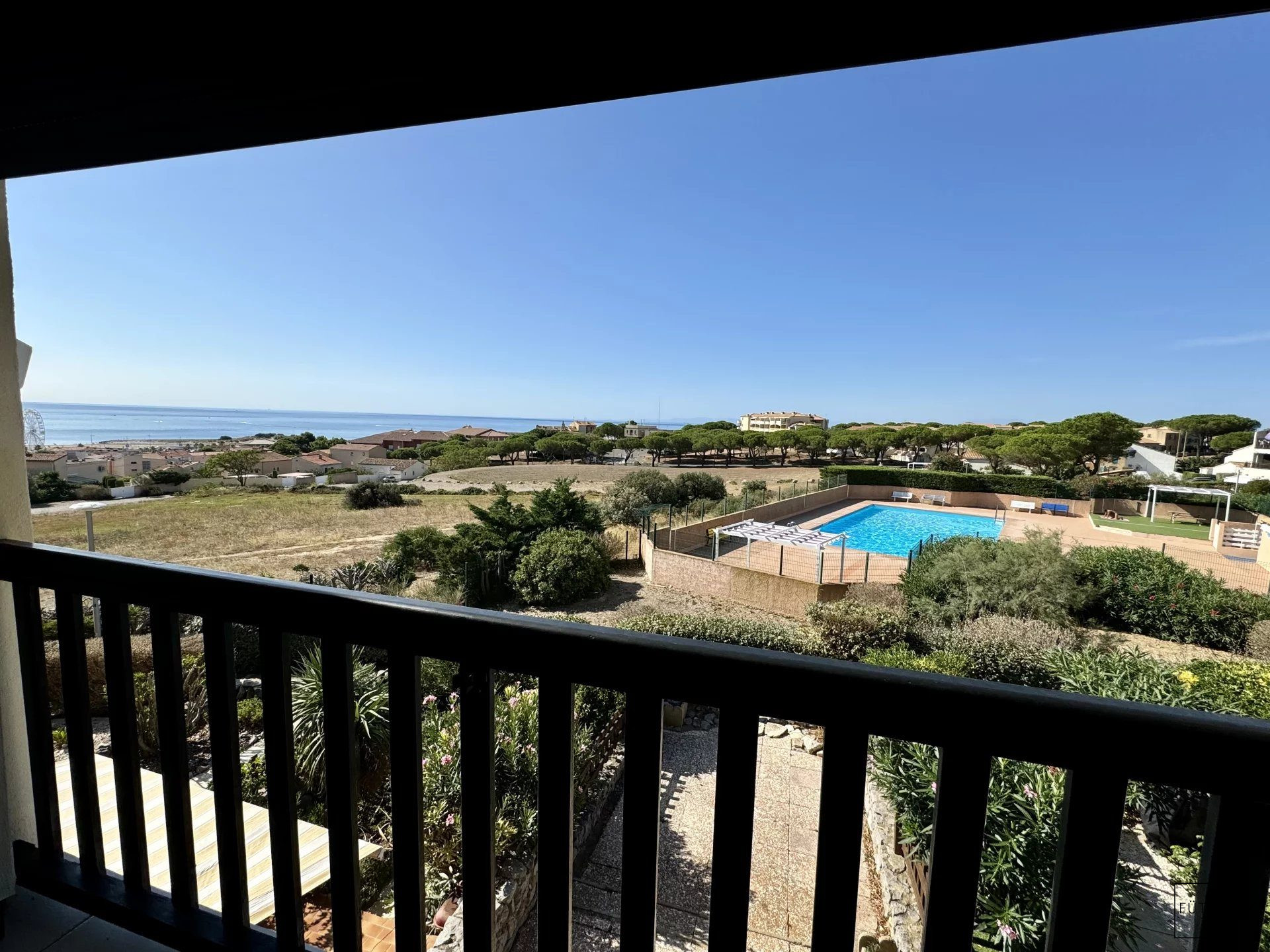 Dans une petite résidence de 4 lots, studio en rez de chaussée avec jardin de 73 m2 env avec vue sur la mer et la plage, il se compose d'une entrée avec cuisine séparée, salle d'eau avec douche à l'italienne, un séjour avec coin nuit, loggia.