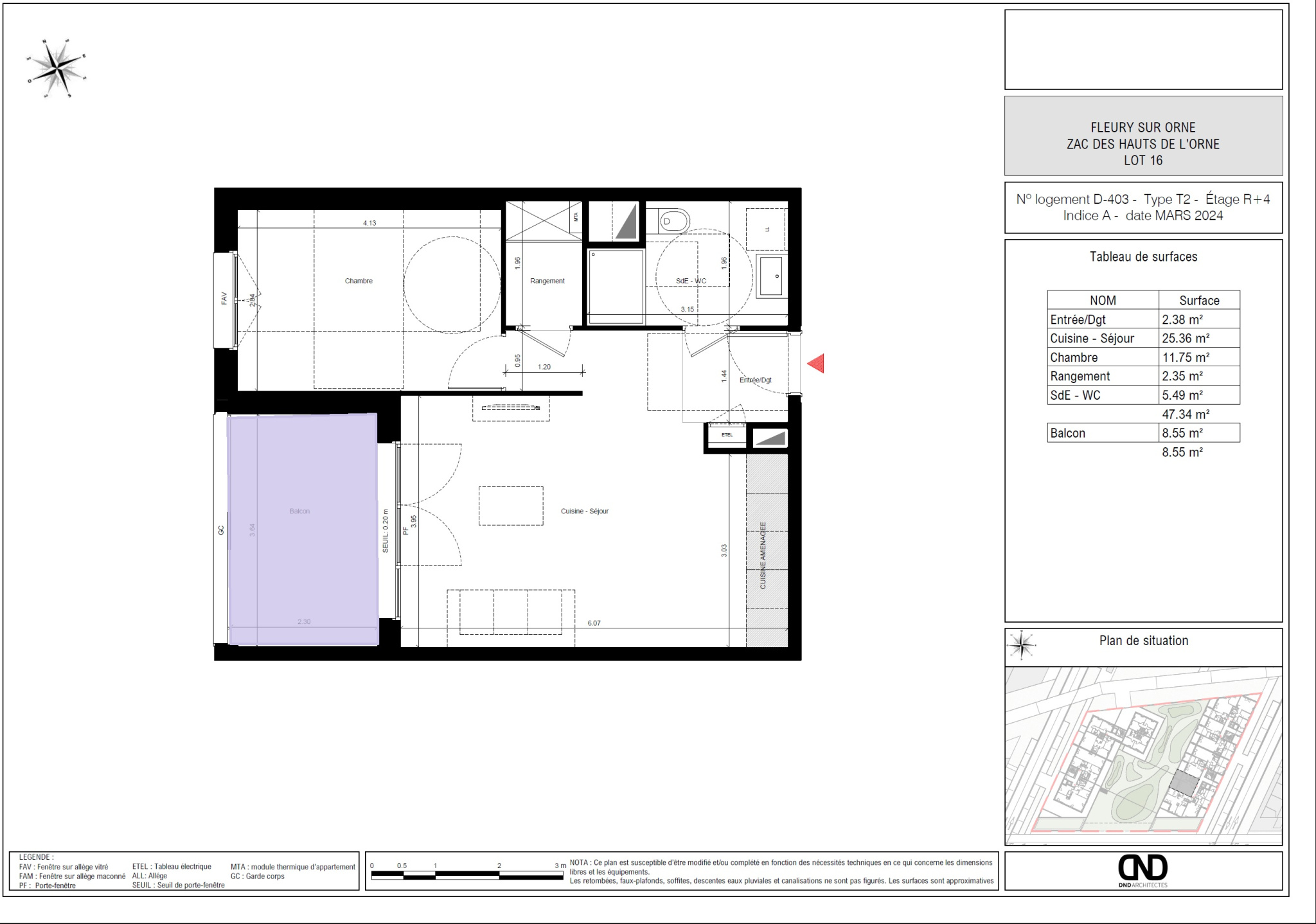 Nuances Immobilières vous propose, au sein de l'ECO QUARTIER de Fleury sur Orne, à proximité immédiate du tramway et des commerces de la place centrale, un beau 2 Pièces avec grand balcon au 4ème étage sur 5 avec ascenseur.