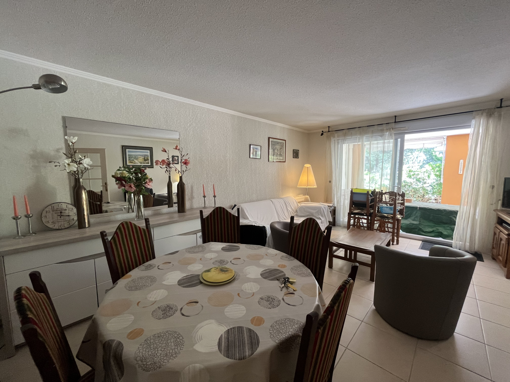 Dans une Résidence sécurisée avec piscine, Appartement type 3 pièces de 74m2 environ, situé en Rez de jardin traversant et se composant comme suit, une entrée, cuisine séparée et équipée, séjour, 2 chambres, salle d'eau refaite et wc. Terrasse couverte do...