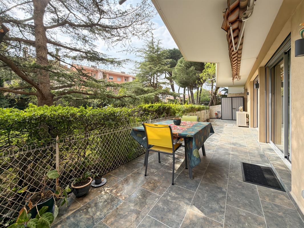 A 200 m. des plages, ravissant 3 pièces bien rénové avec grandes terrasses et jardin suspendu (50 m2 environ) comprenant : une entrée, séjour, cuisine indépendante aménagée et équipée, 2 chambres, salle d'eau, wc séparé.