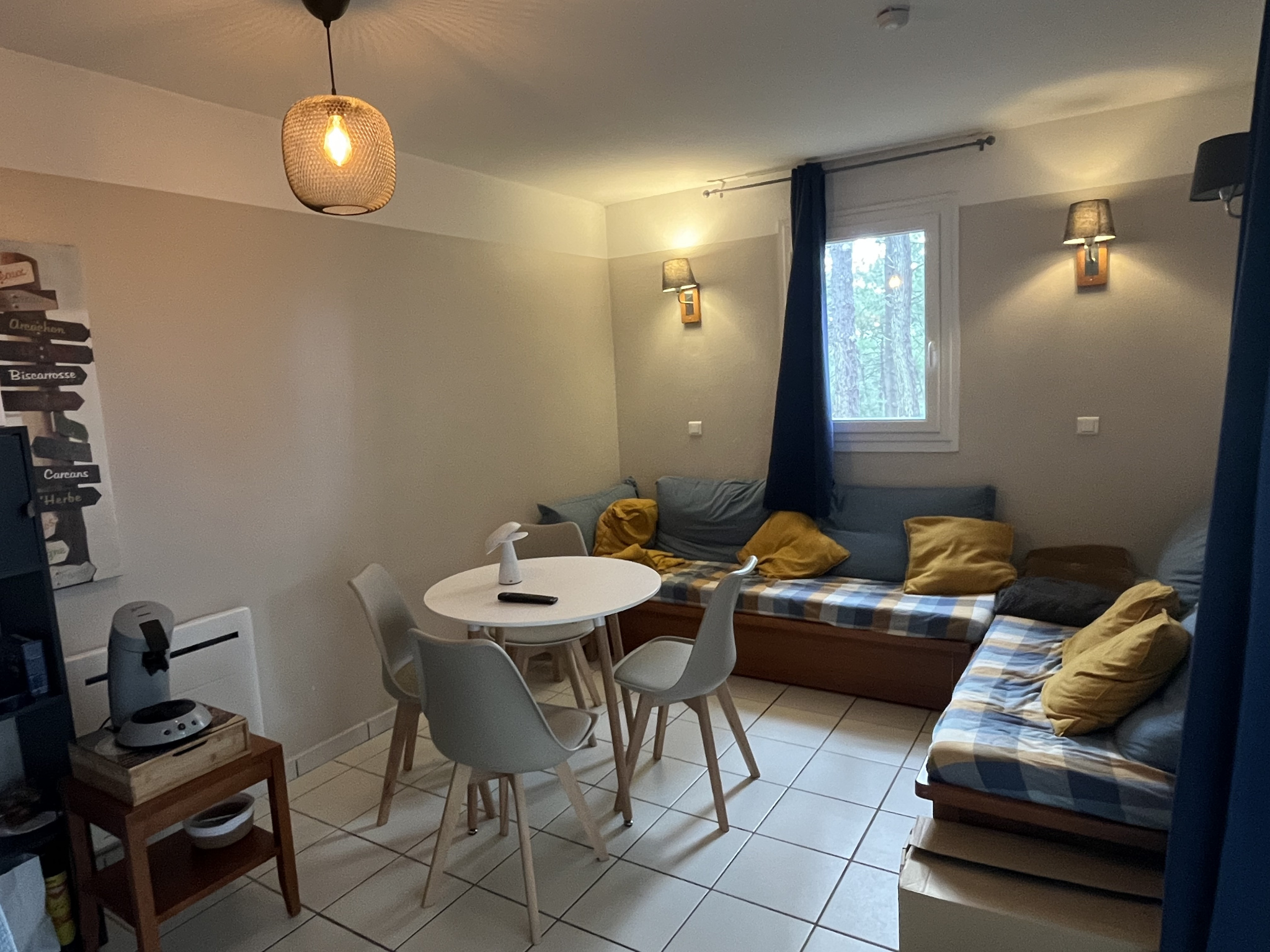 Résidence les grands pins. Entre Maubuisson et Carcans Plage. Appartement de type 2 au 1er étage ! D'environ 30 m2 il se compose de : séjour avec kitchenette, chambre, salle de bains avec WC et balcon. A découvrir sans tarder ! Contact local : Maxime PHOE...