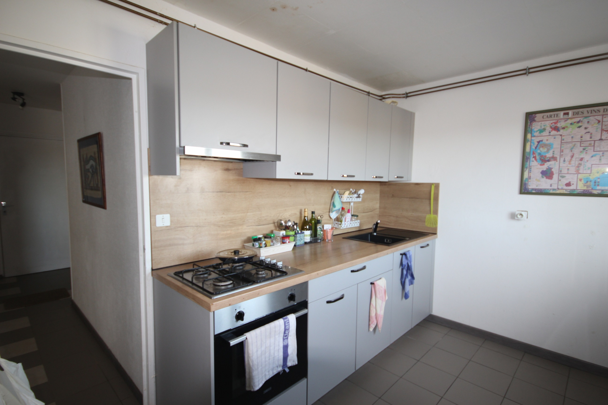 Situé au 3e étage dans un immeuble de 4 étages, il est à proximité d'un supermarché, un primeur et une école maternelle.