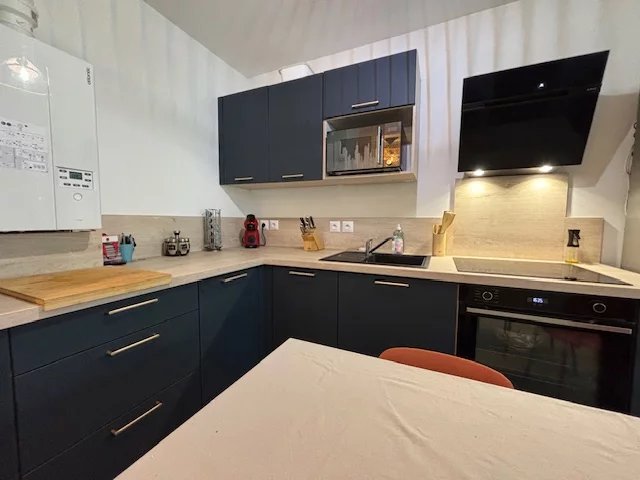 Entrée, rangement, cuisine aménagée dinatoire avec accès à la terrasse et au ...
