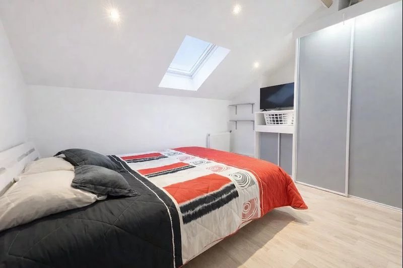 Dans une petite copropriété, appartement au dernier étage de type F3 comprenant : salon-séjour avec cuisine ouverte aménagée et équipée, deux chambres...