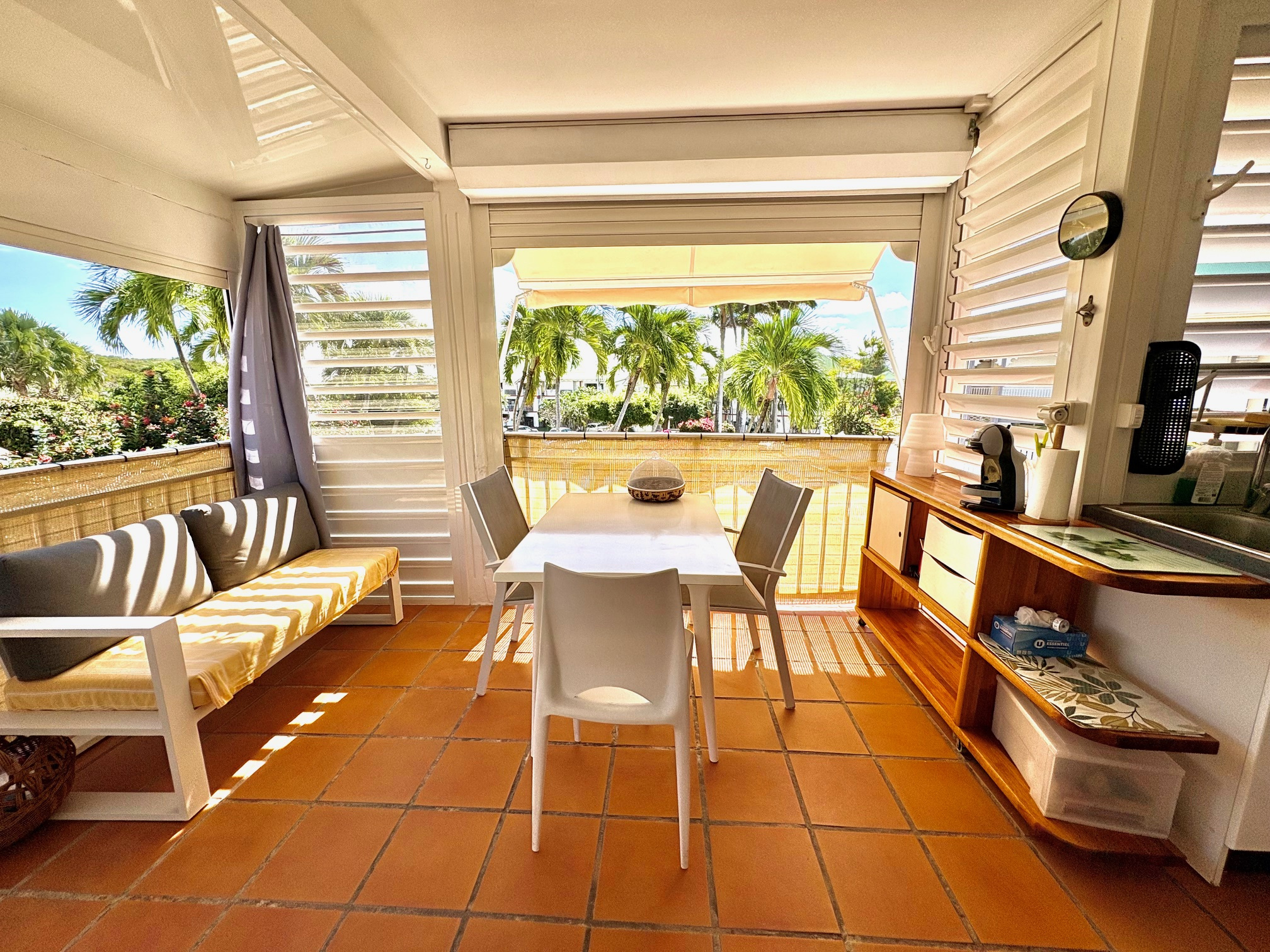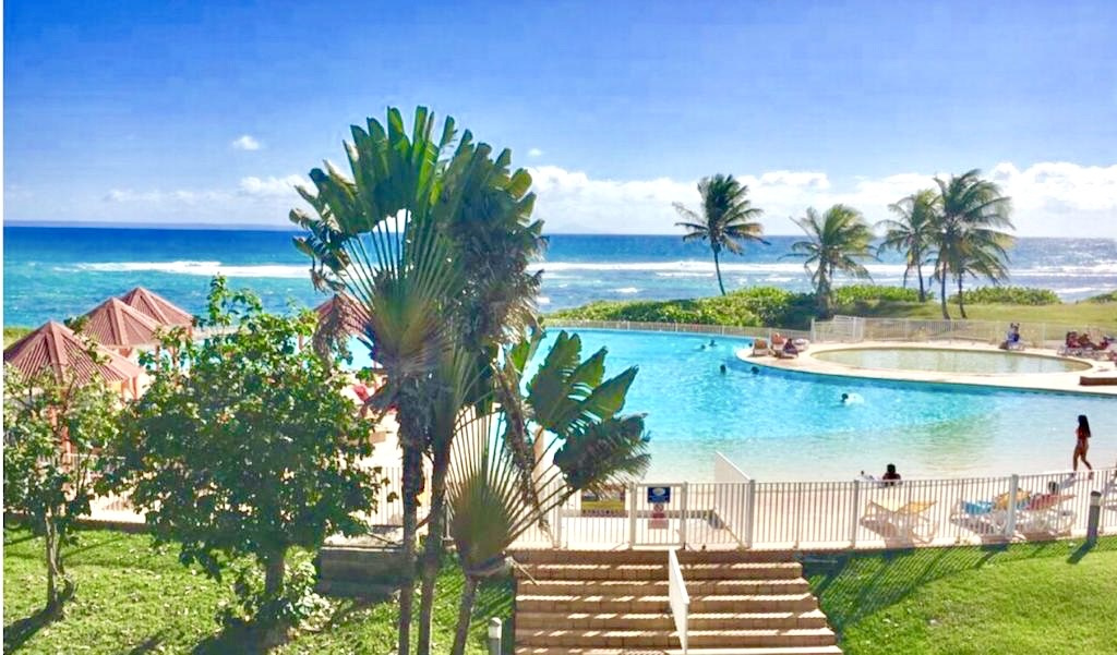 A voir absolument résidence le Manganao Saint-François, appartement idéalement situé offrant une vue mer sur la Pointe des Châteaux et Marie-Galante.