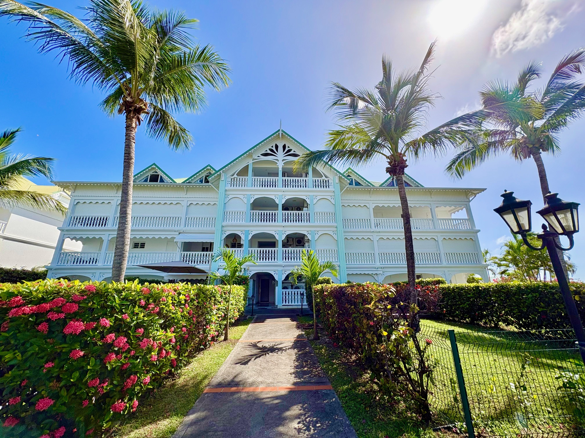 Sur le territoire de Saint-François, dans une petite copropriété à taille humaine, nous vous présentons en exclusivité, cet appartement aux volumes généreux, situé au premier étage d'un immeuble construit en 2006, à seulement quelques encablures des plag...