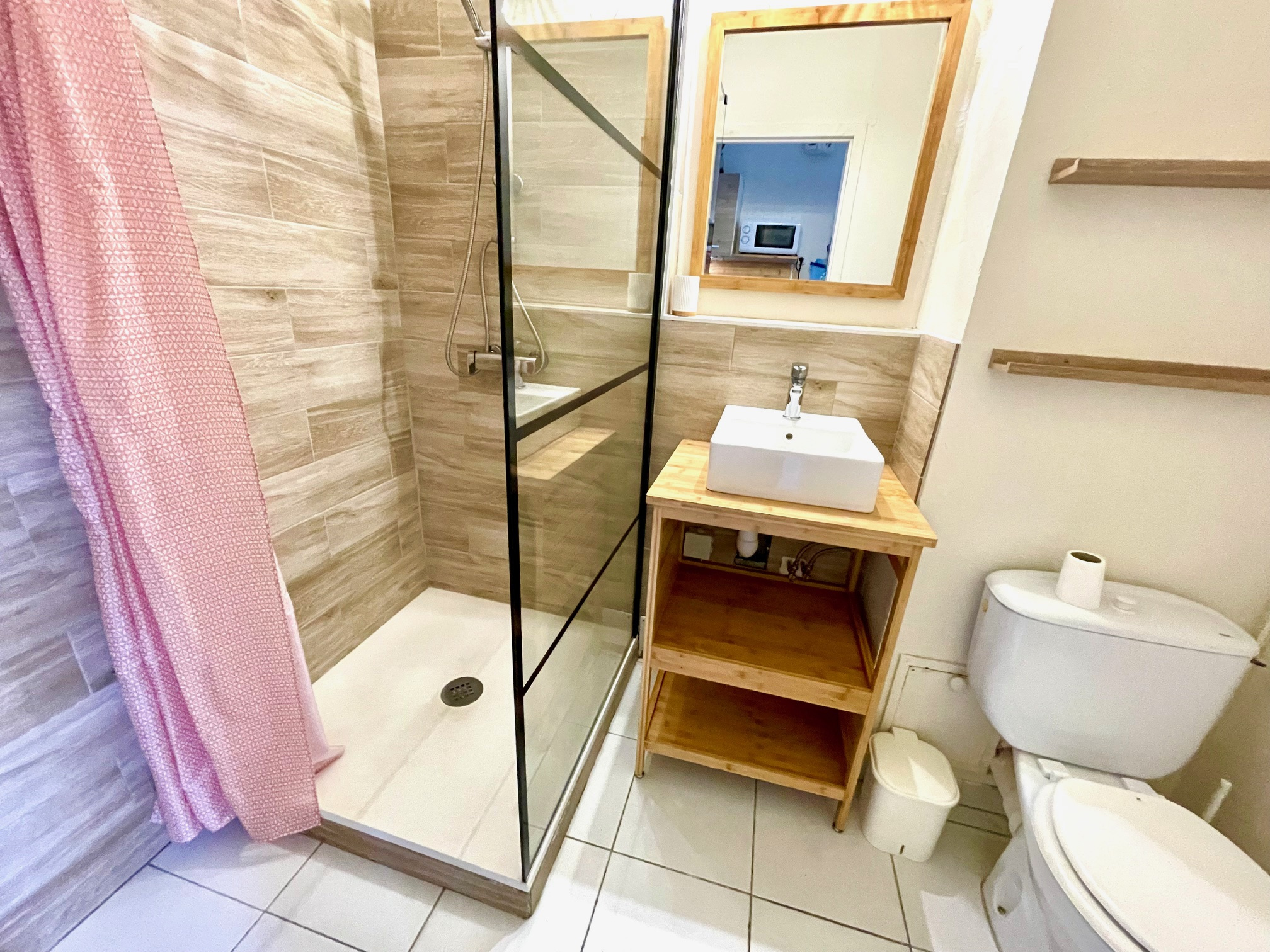 Ce studio est composé d'une entrée avec placard, d'une chambre climatisée, d'une kitchenette sur la...