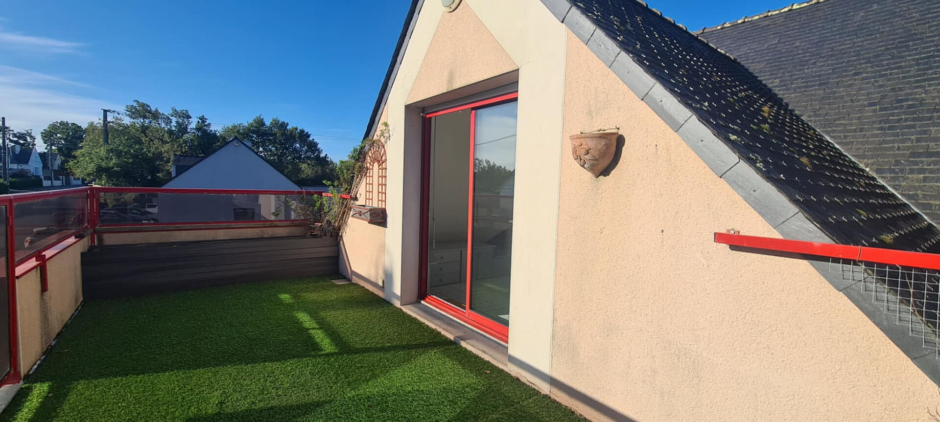 La Madeleine de GUERANDE, beau T3 de 86 m² surface utile, lumineux, situé en plein centre du village, au 1er étage d'une petite copropriété, et bénéficiant d'une belle terrasse de 15m2 exposée sud.