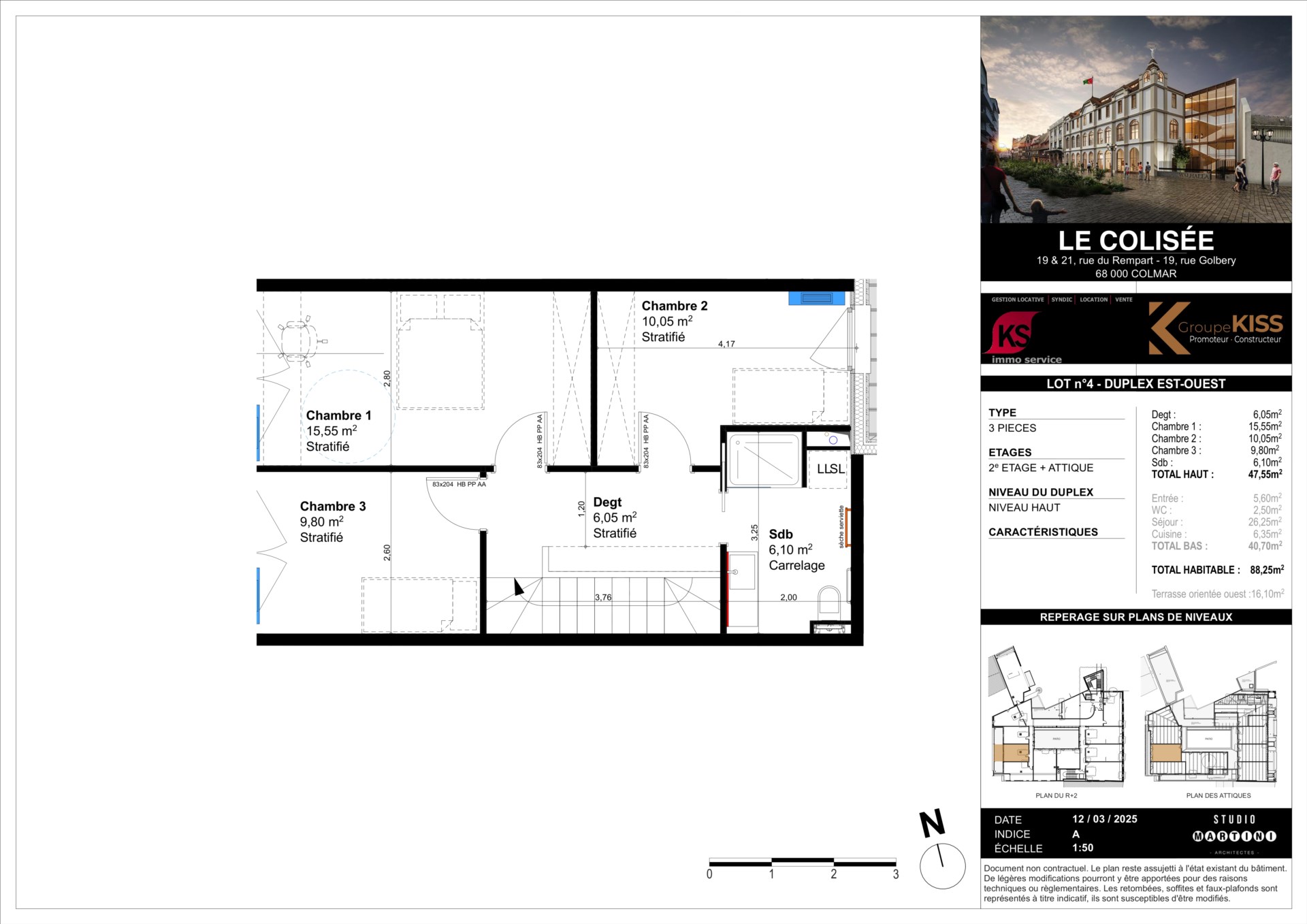 RESIDENCE COLISEE - JUIN 2026<BR><BR>Rue du Rempart, appartement T4 neuf de 78 m² en duplex situé au 2ème étage, avec ascenseur, dans le centre-ville Colmarien.<BR><BR>Le logement est composé, au 1er niveau, d'une entrée avec placa...