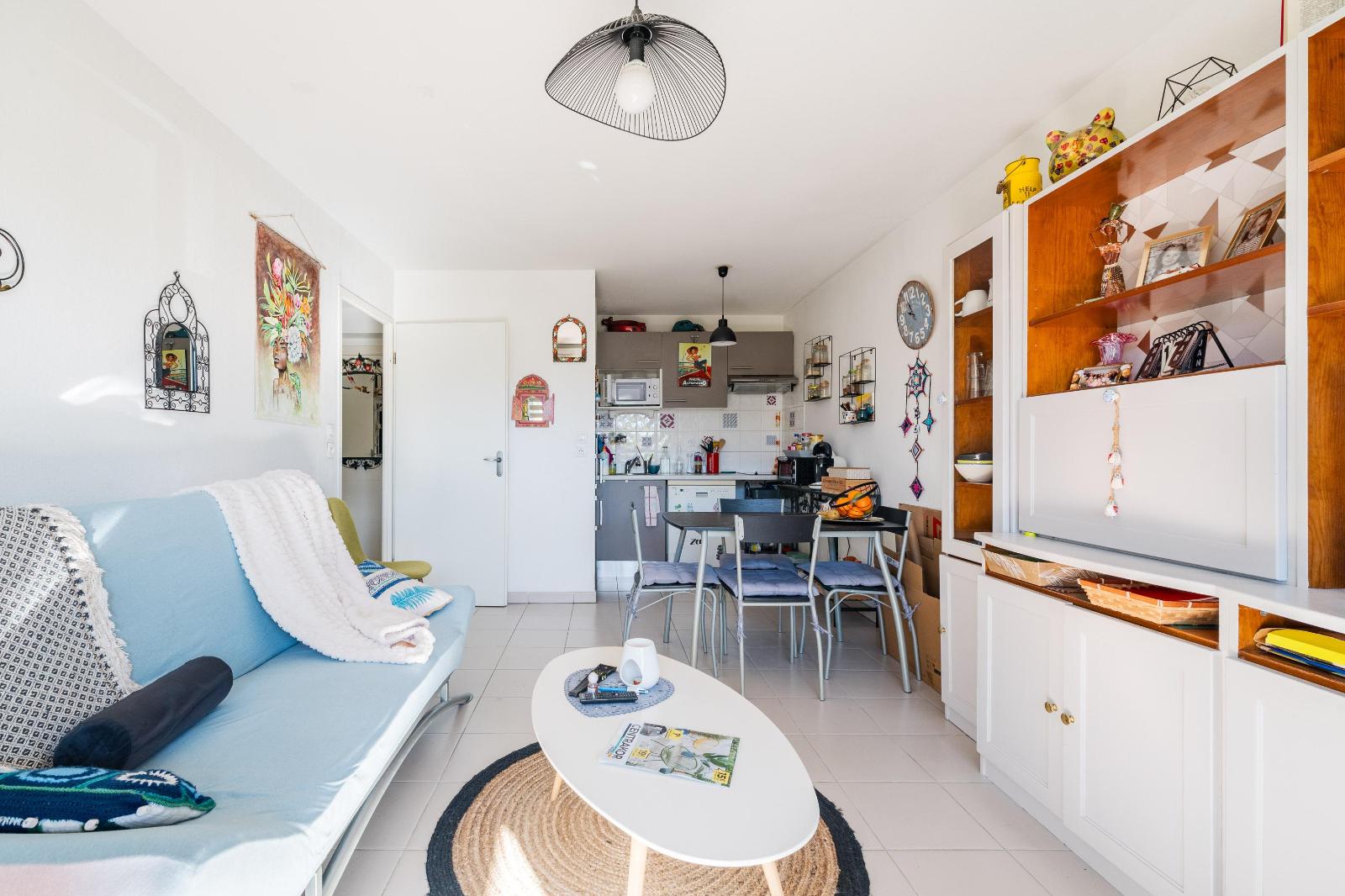 Dans une résidence calme et sécurisée avec piscine et espaces verts, un bel appartement lumineux de 32m².