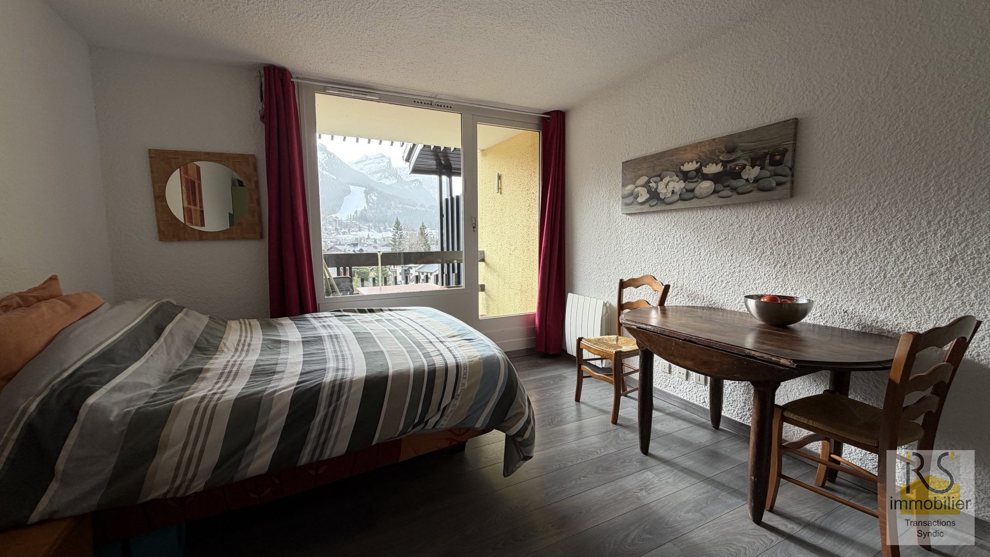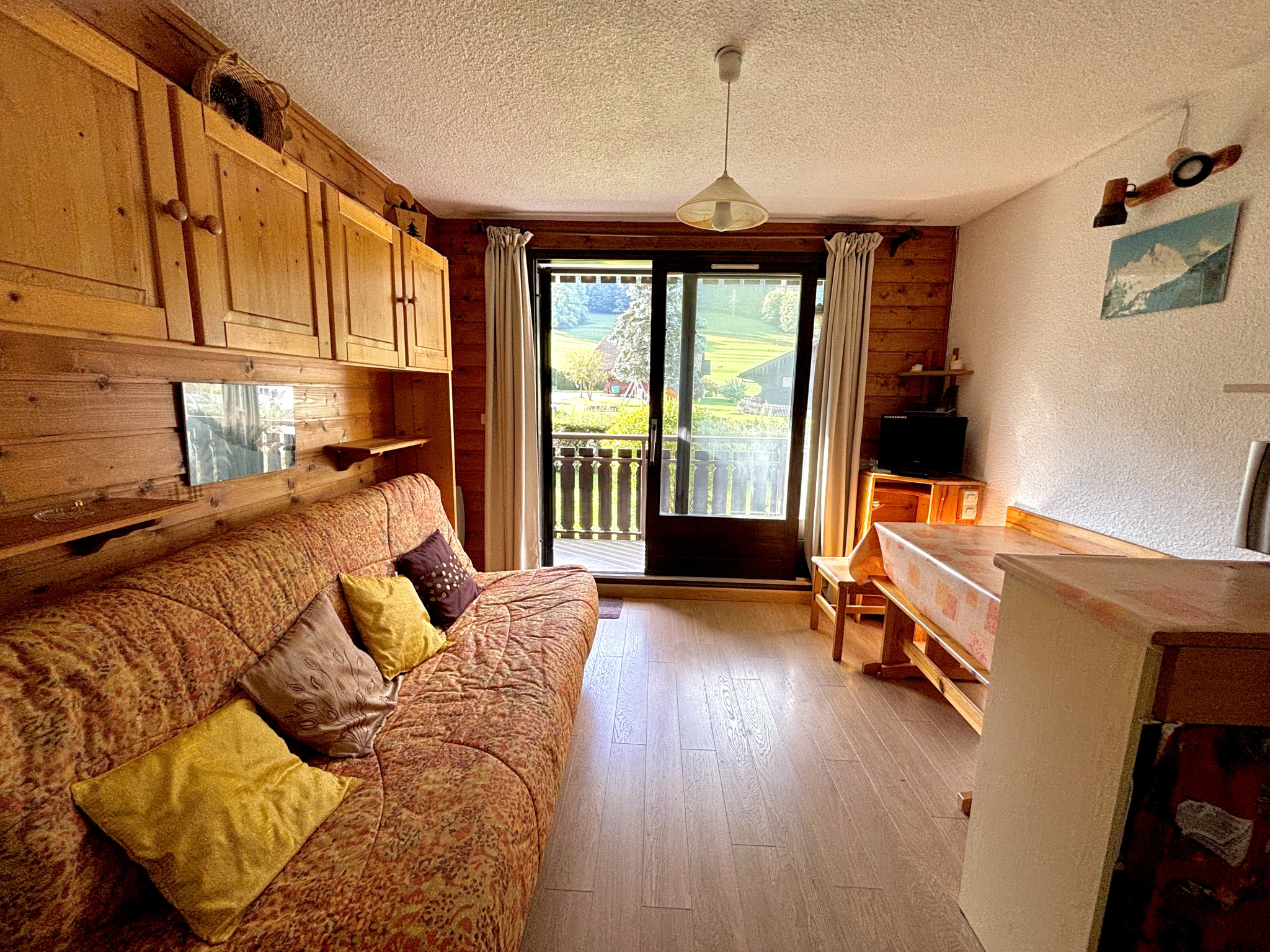 Studio idéalement situé au pied des pistes du Crêt Béni dans bâtiment très bien entretenu.