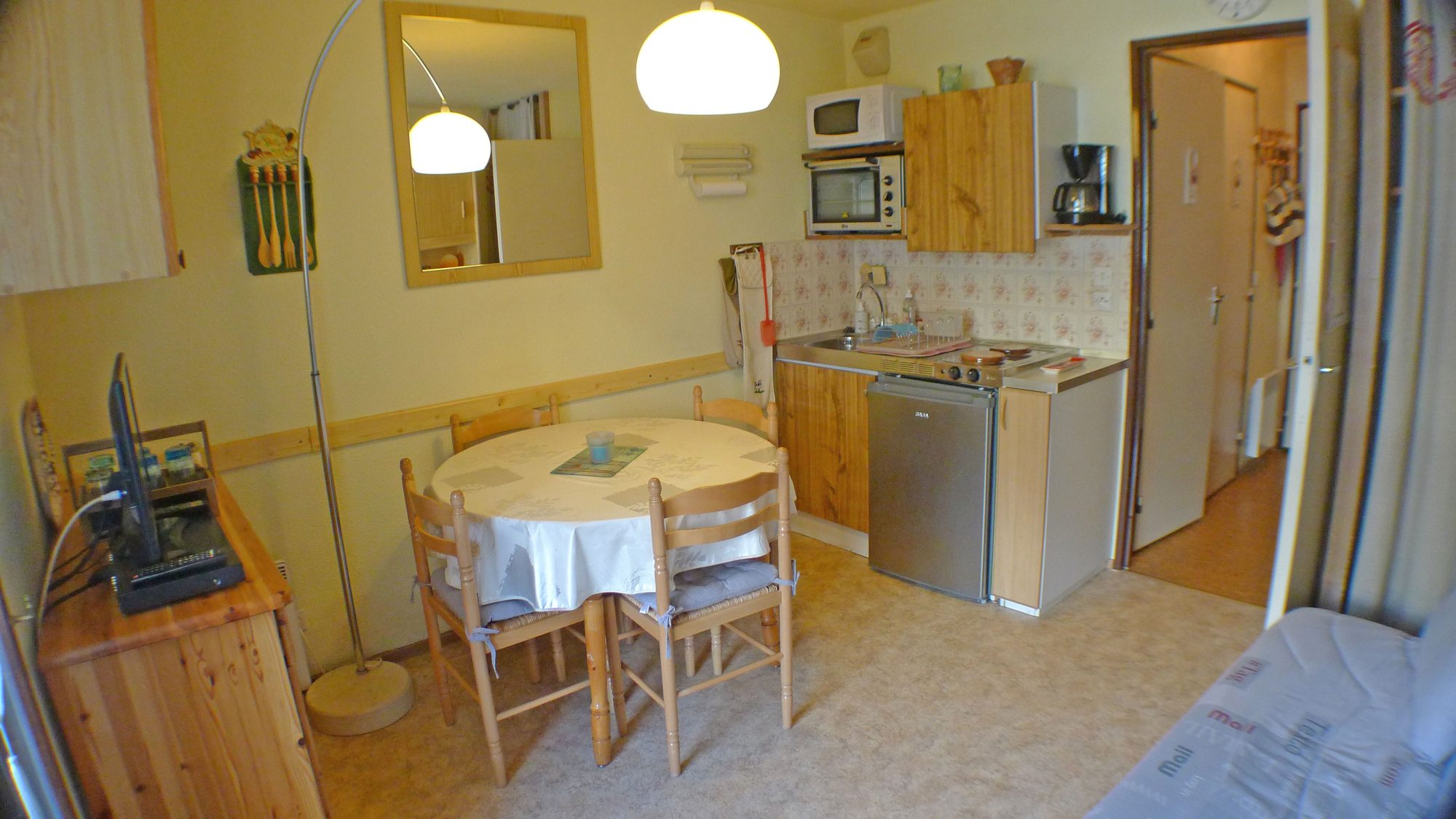 Charmant studio de 20 m2 situé au 2 ème étage d'un immeuble situé au pied des pistes de Combloux, sur le domaine skiable des Portes du Mont-Blanc.