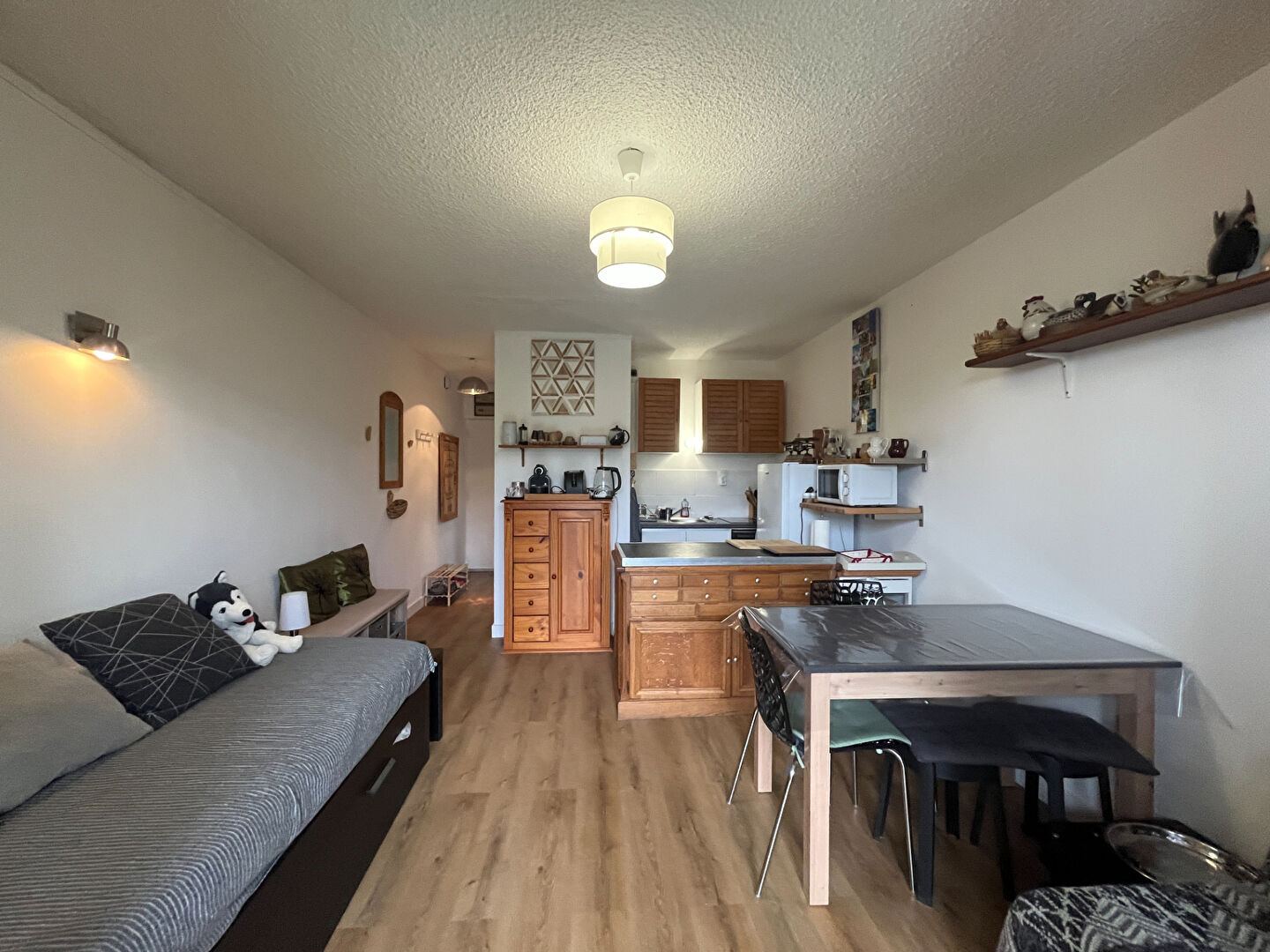 - Un séjour de 10 m² lumineux, avec une kitchenette neuve parfaitement agencée