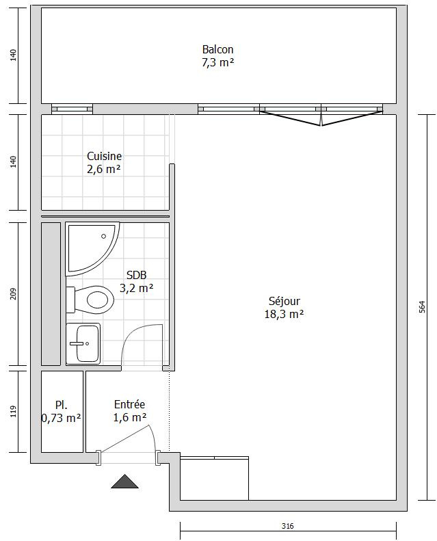 Composé d'une entrée avec placard, d'un Séjour avec coin cuisine et d'une salle d'eau avec WC.