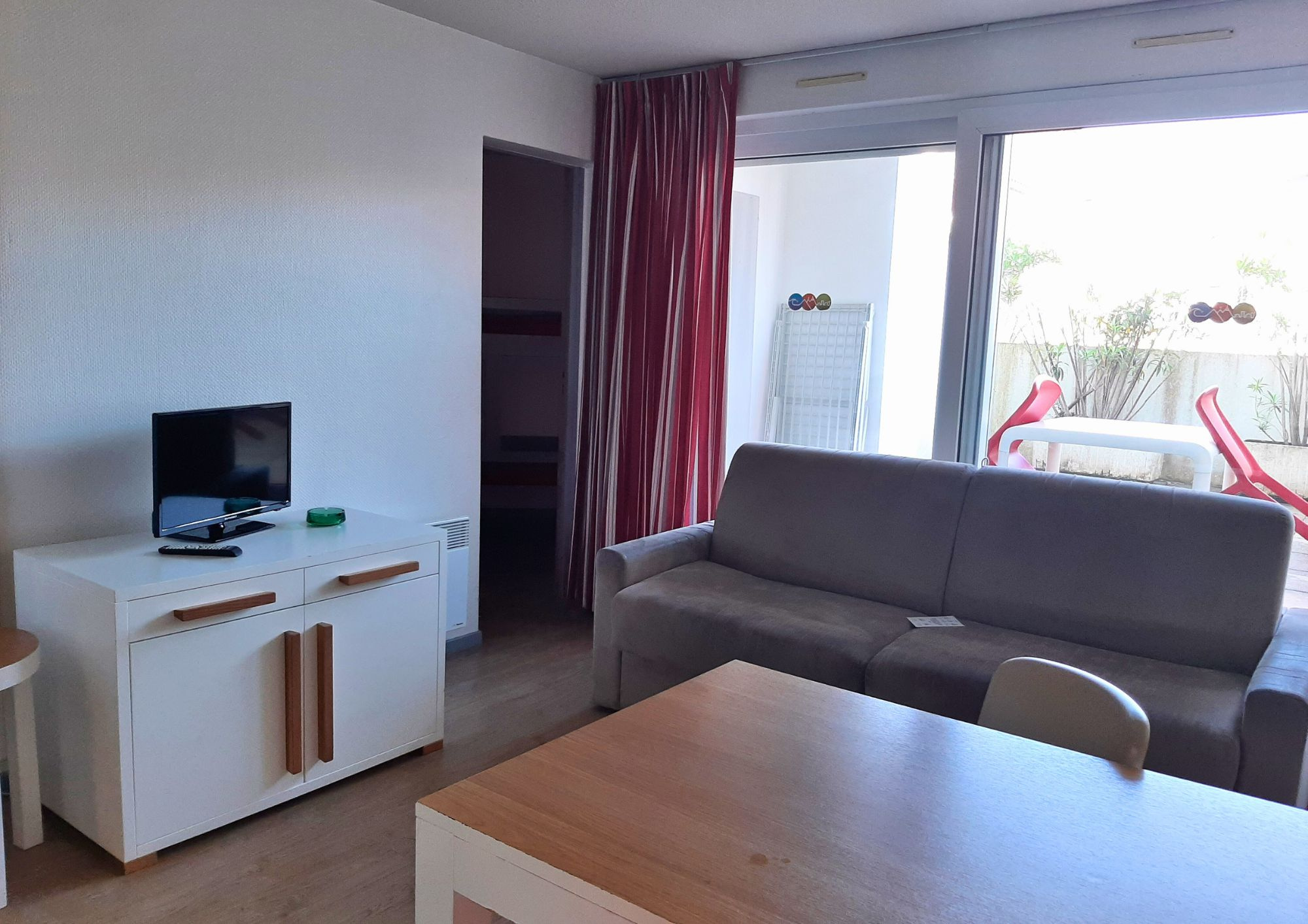 Situé à la plage, appartement en rez-de-chaussée, de 35m² composé d'une cuisine ouverte sur séjour, une salle d'eau avec wc et un coin nuit, le tout donnant sur terrasse de 7m². Parfait état.