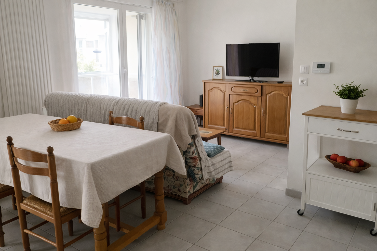 Cet appartement dispose d'une entrée, d'un espace de vie lumineux et spacieux...