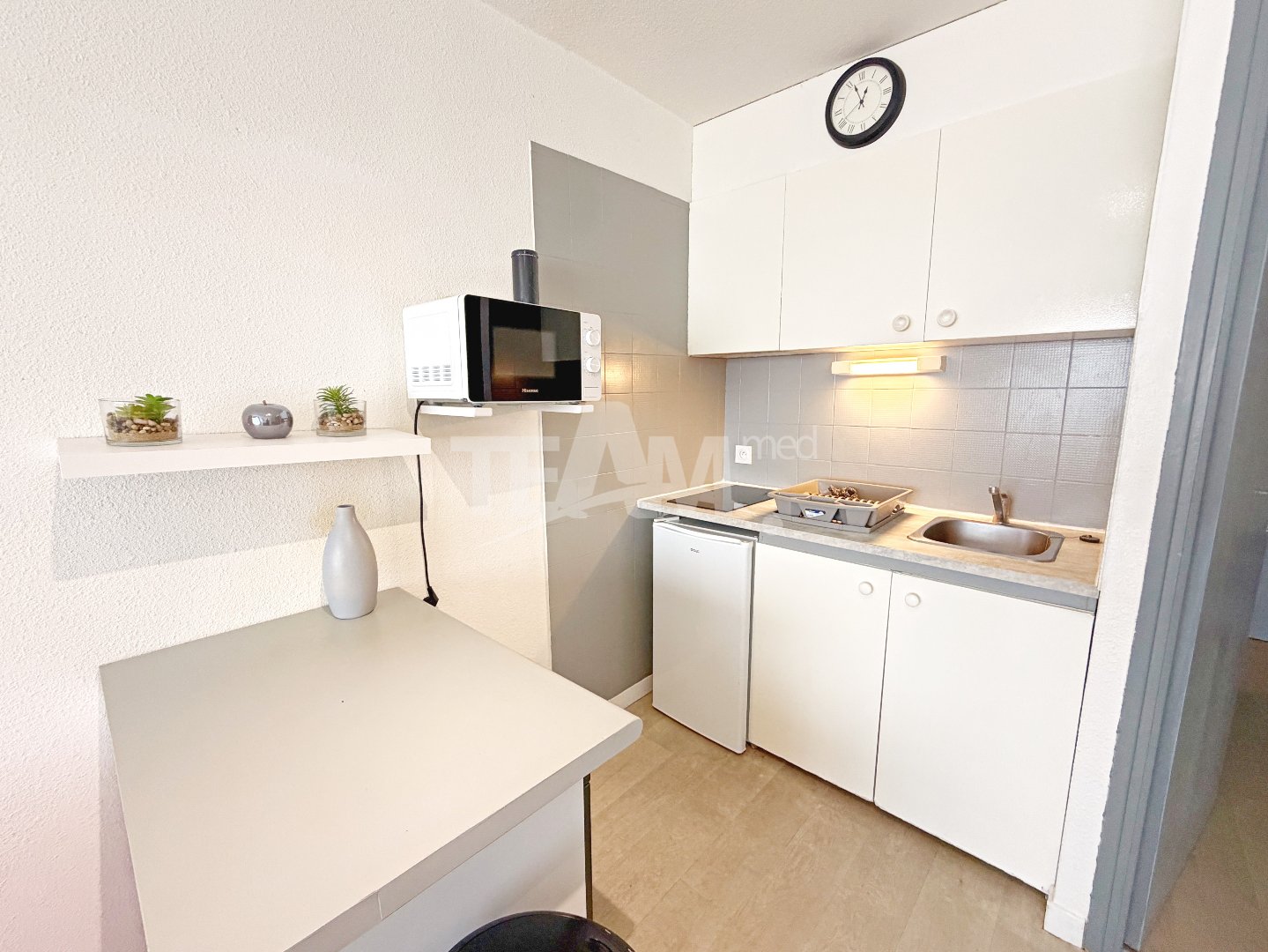 CAP D'AGDE / Plage de la Roquille : agréable studio de 18,63m² en rez-de-chaussée comprenant, cuisine aménagée, séjour, salle d'eau avec douche et WC et placard. Belle terrasse de 13m².