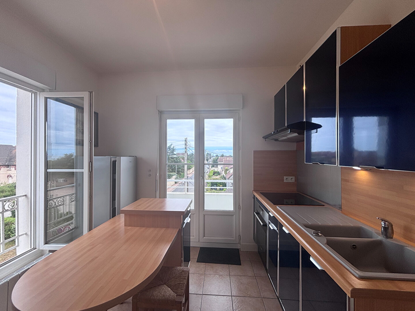 Appartement T2 avec vue mer, composé d'une entrée, d'une chambre, d'un séjour, d'une cuisine, d'un WC et d'une salle d'eau. À deux pas de la plage. Une cave vient compléter ce bien.