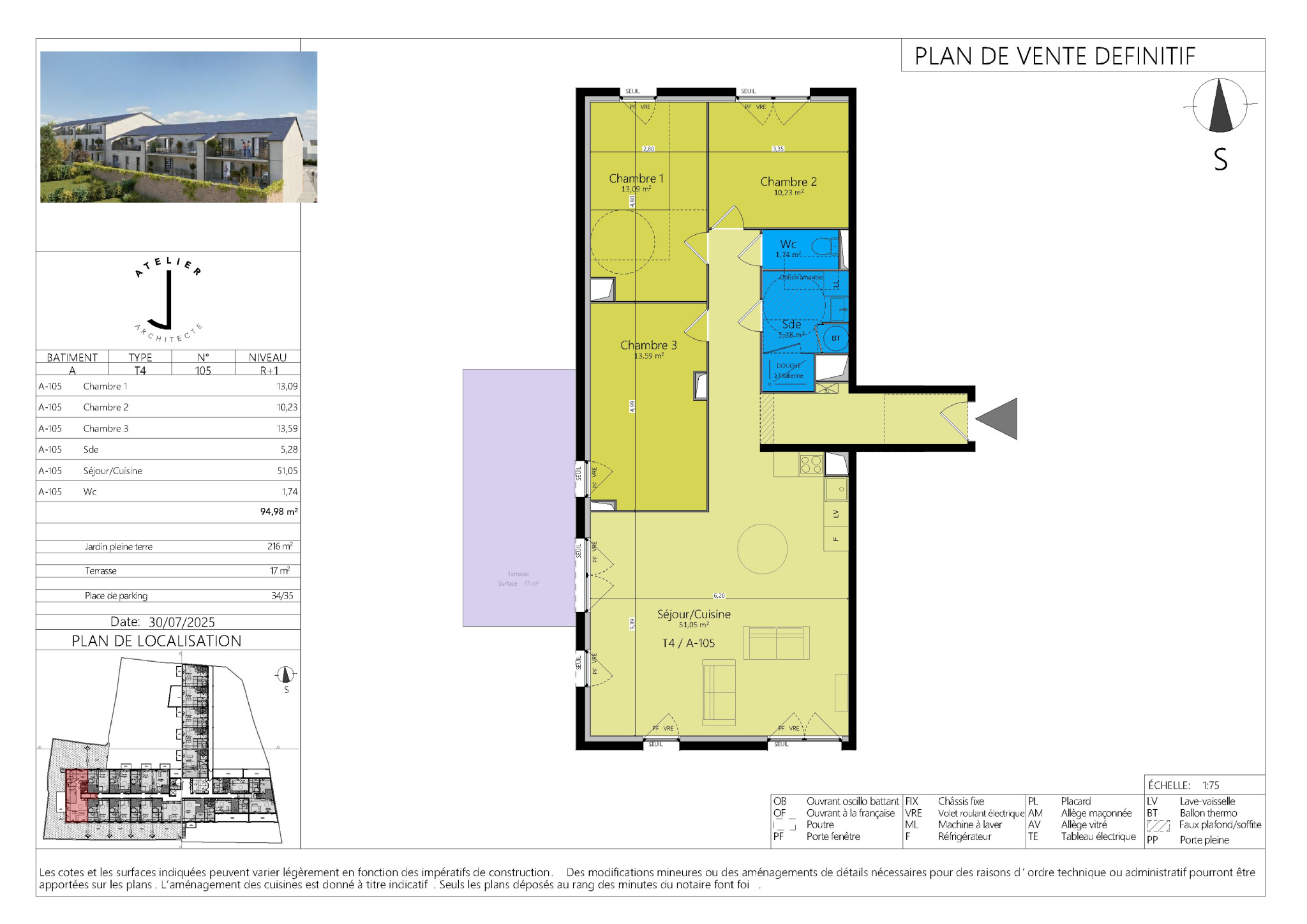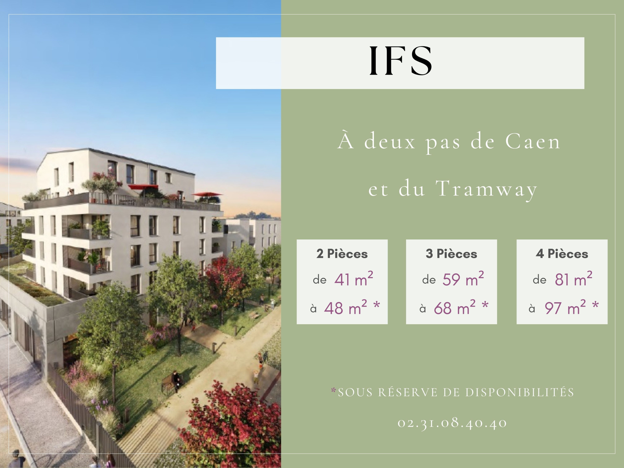 Nuances immobilières vous propose à IFS, à la limite de Caen, avec accès à pied au tramway, la possibilité de vous offrir un superbe appartement de 4Pièces exposé OUEST, au 2ème étage avec ascenseur.