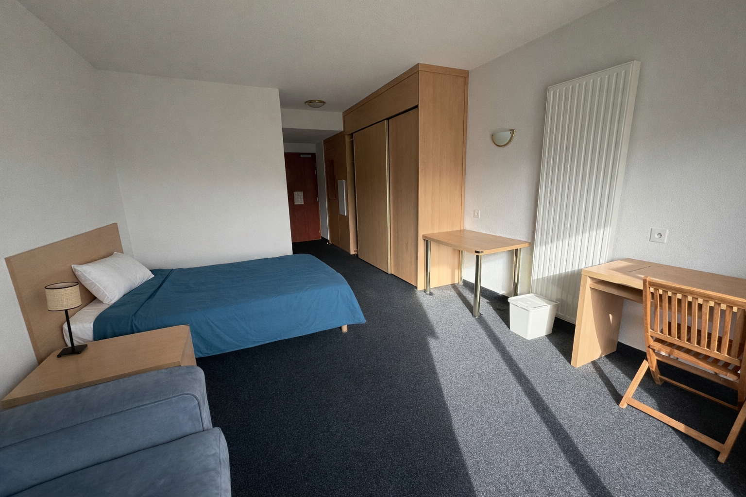 Studinette de plus de 9 m² avec une belle rentabilité, comprenant une pièce principale, un lit, une penderie...