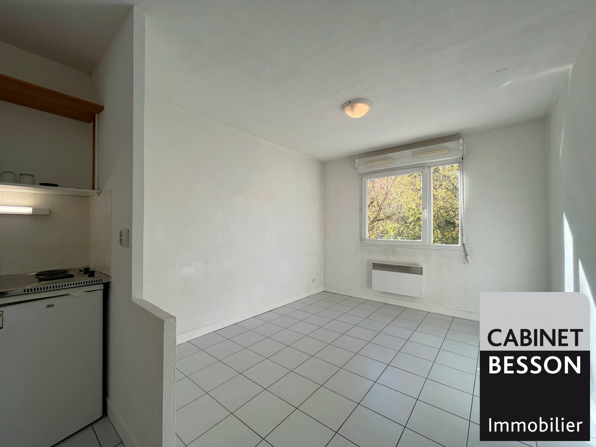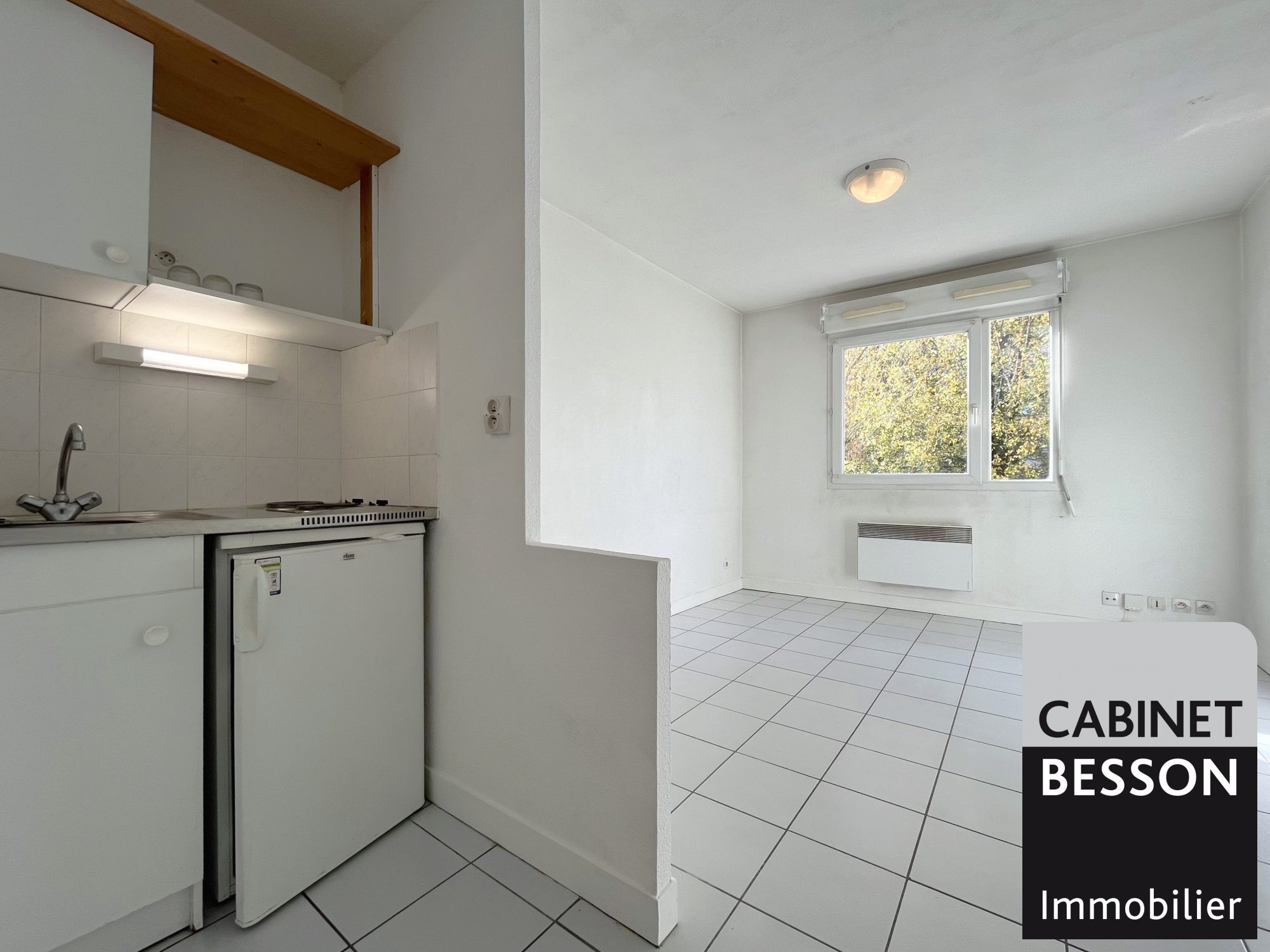 Pièce de vie avec kitchenette, exposée Ouest, Entrée avec placard, salle de bain...