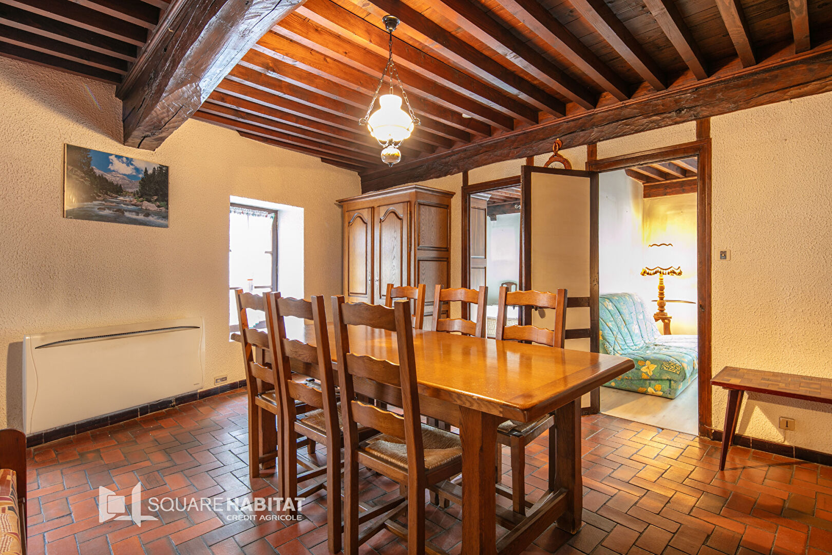 1 grande chambre, une cuisine, 1 SDB avec douche et WC.
