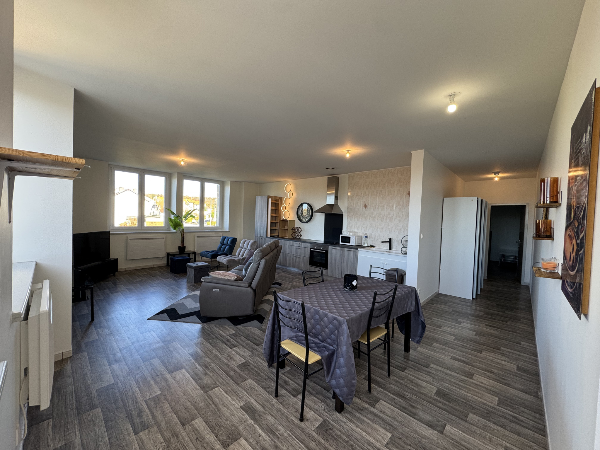 un appartement de 120m2 de plain pied entièrement rénové loué 500EUR composé d'une cuisine équipée-salon séjour de 43m2-sdb-wc-chauff...