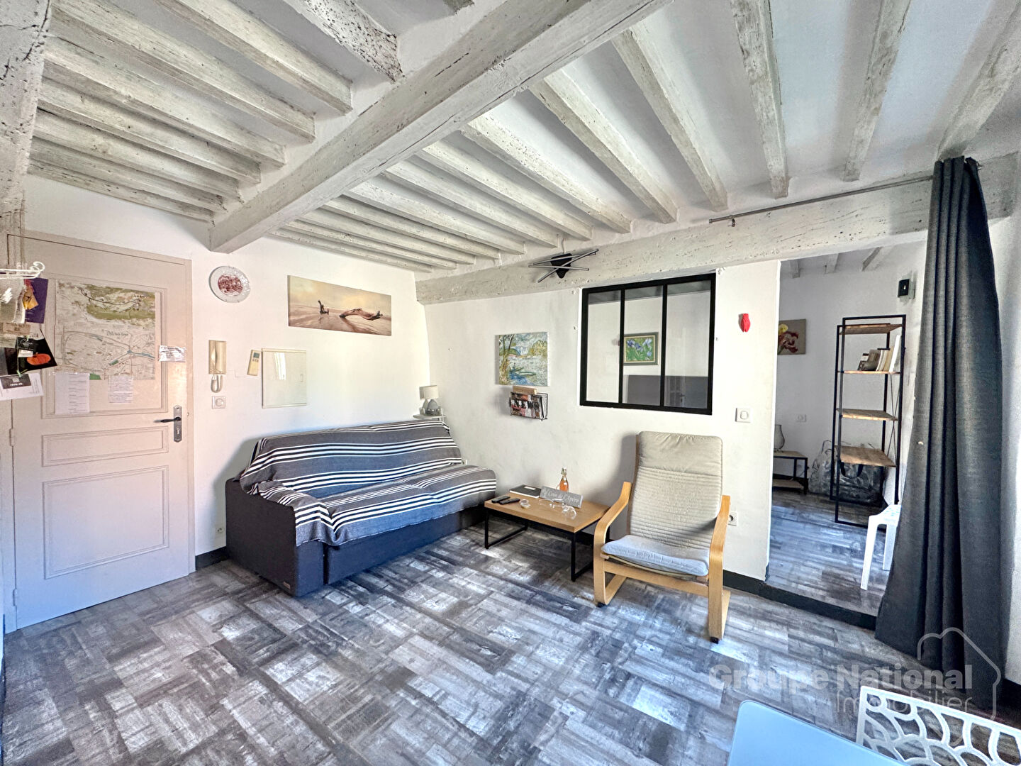 Centre-ville.<BR>Studio d'environ 36 m² avec belle hauteur sous plafond à la française et cheminée à insert. Un espace séjour/cuisine de 29 m², salle d'eau, wc. Volets électriques, double vitrage, climatisation réversible Beaucoup de charme ! U...