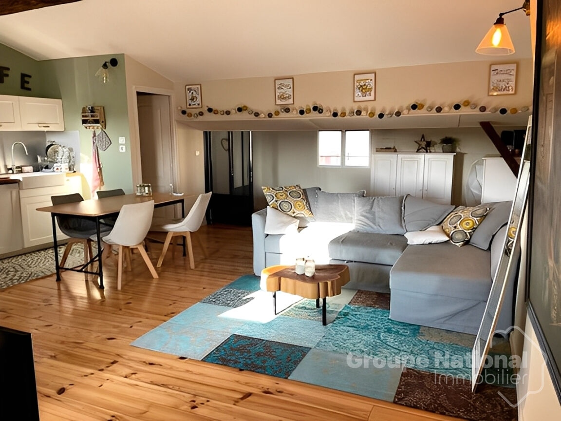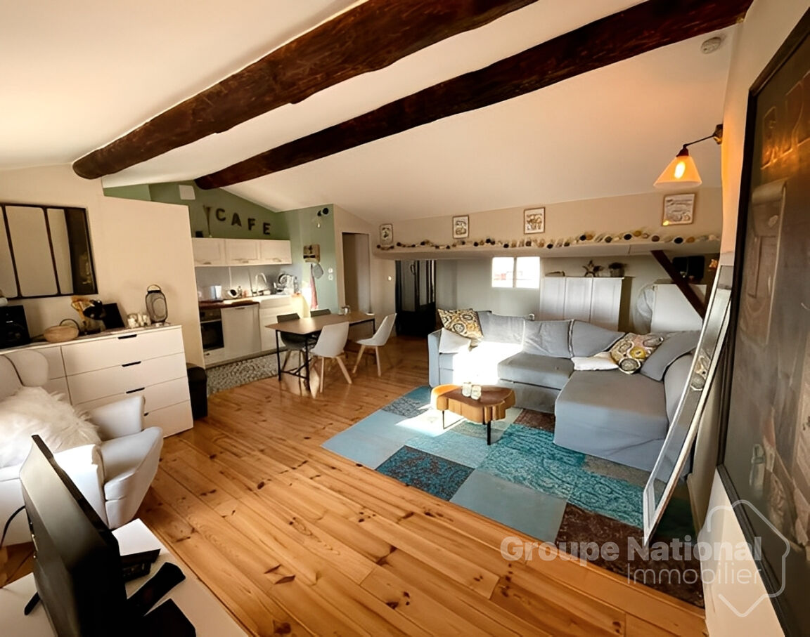 Au 1er étage d'une petite copropriété, agréable appartement de type 3 d'une surface carrez de 65M2 comprenant, un séjour avec une cuisine équipée (34M2), une chambre (10.86M2) , une mezzanine, salle de bains & wc (7.50M).