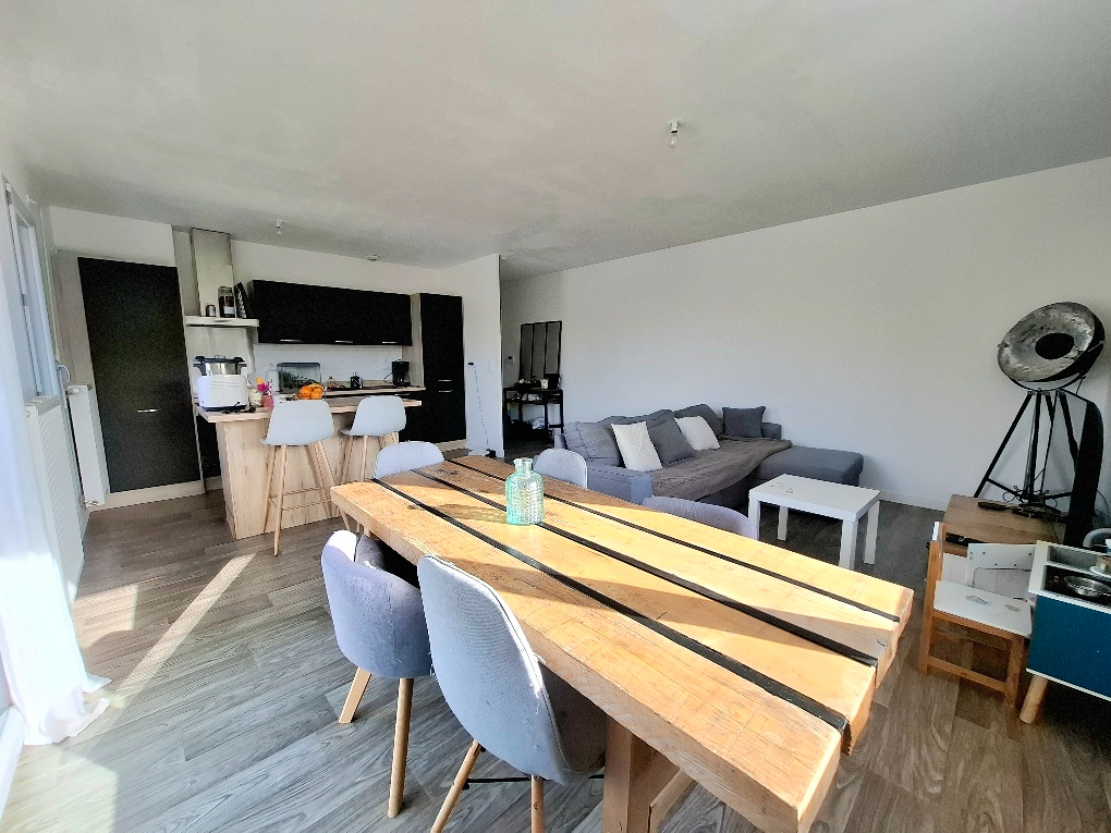 Appartement de type 3 composé d'une entrée avec dégagement, séjour-salon, cuisine ouverte, chambre avec placard, bureau avec placard, salle d'eau-wc, puis deux caves.
