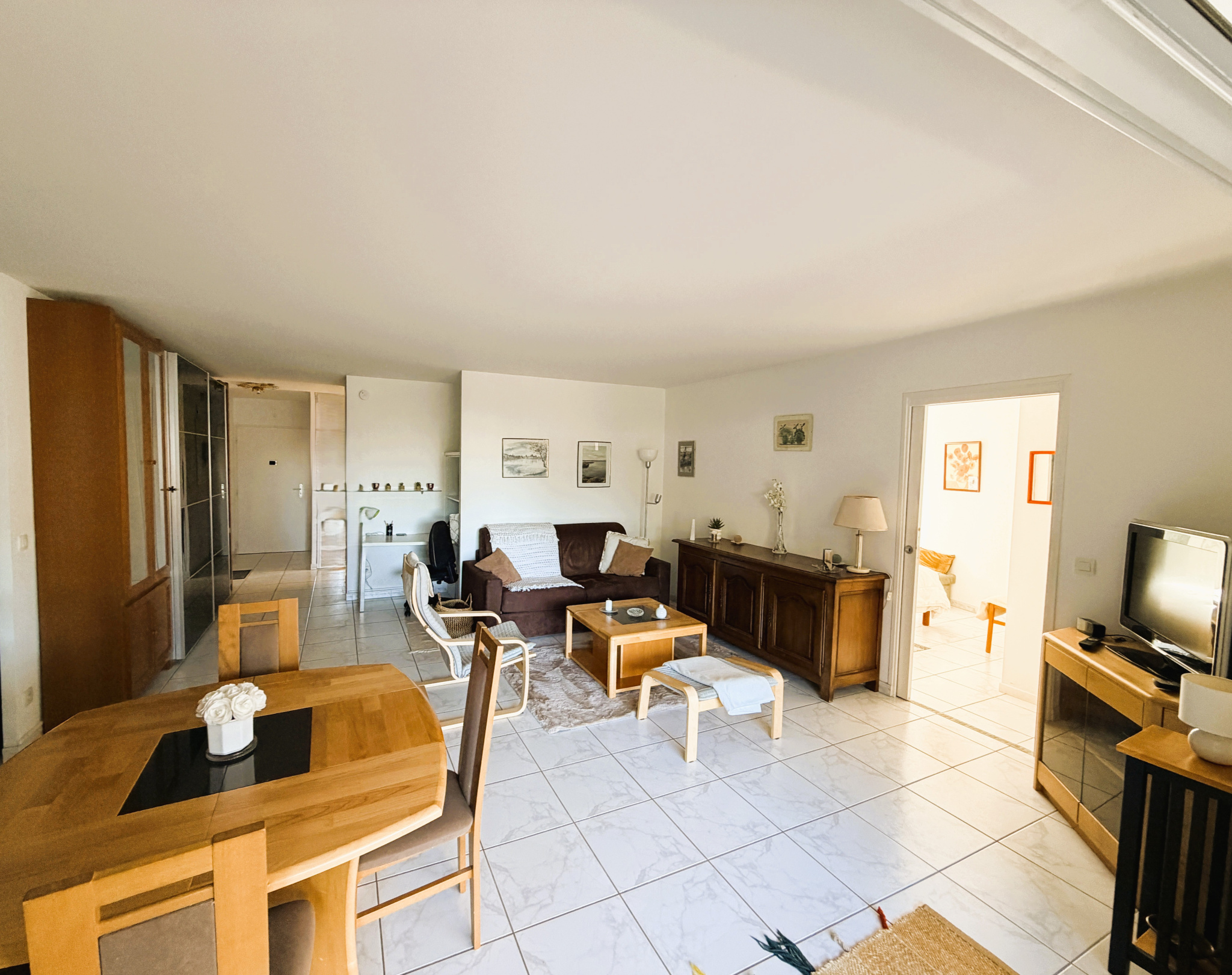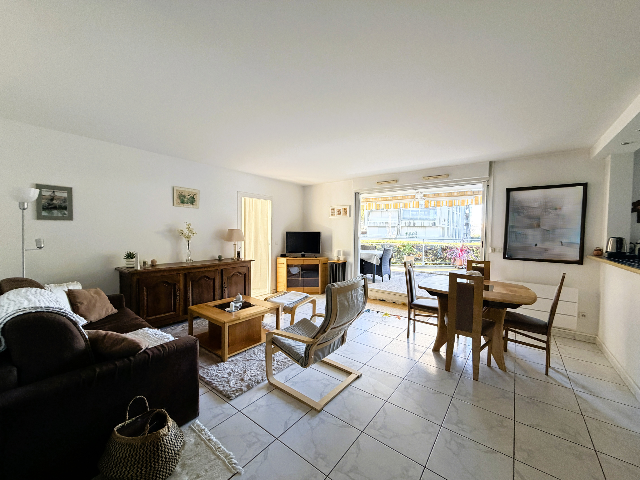 Très bel appartement 3 pièces de 73 m2, aux prestations soignées et élégantes - TERRASSE EN ANGLE de 42 m2 au calme, vue verdure, exposée Est et Sud - Situé à deux pas des plages et des commerces - Sans le moindre travaux : volets roulants électriques, double ...