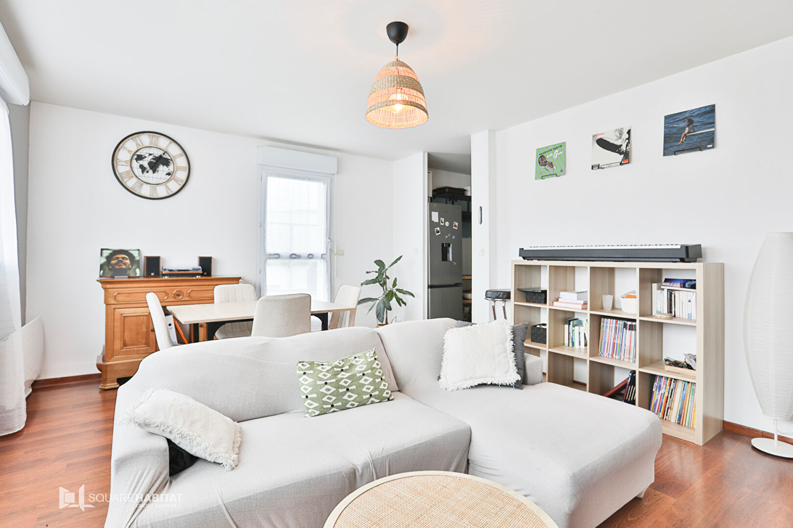 une grande pièce de vie avec cuisine ouverte a...