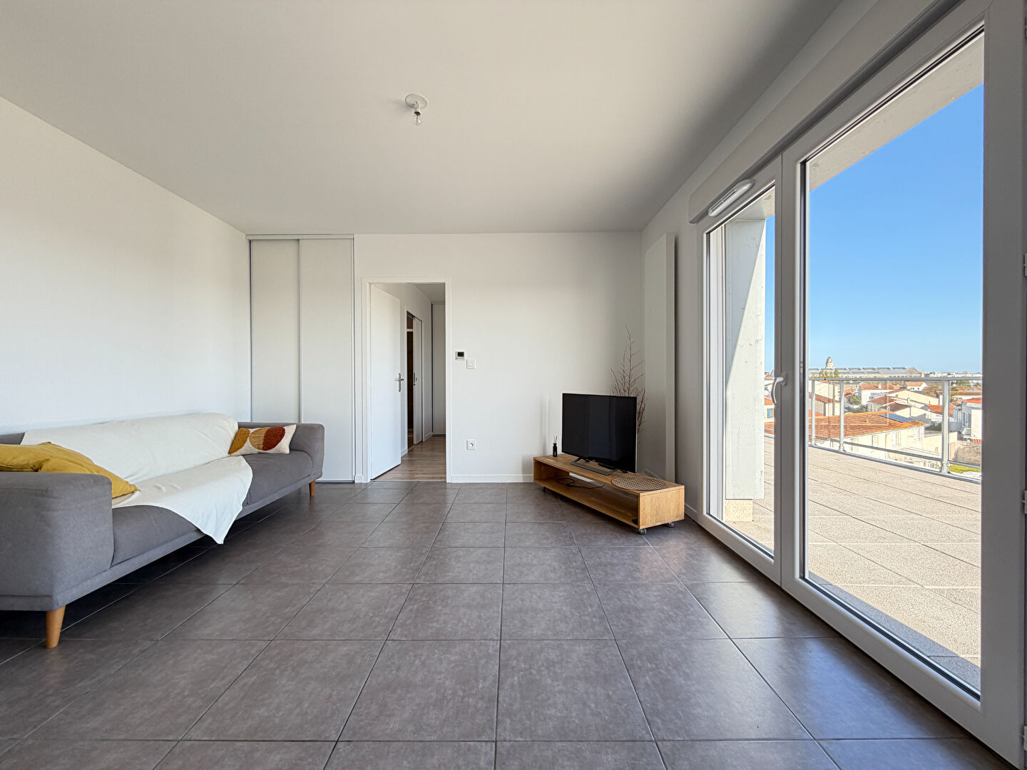Proche centre ville, à 1.5km du marché, agréable appartement type 3 avec terrasse plein sud.