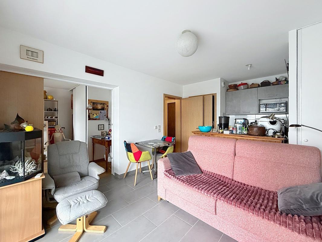 Herencia immobilier - Au sein d'une résidence de 2015, un appartement de type 2 de 50m2 composé d'une pièce de vie très lumineuse avec kitchenette et son balcon couvert orienté sud, une chambre avec placard, une sal...