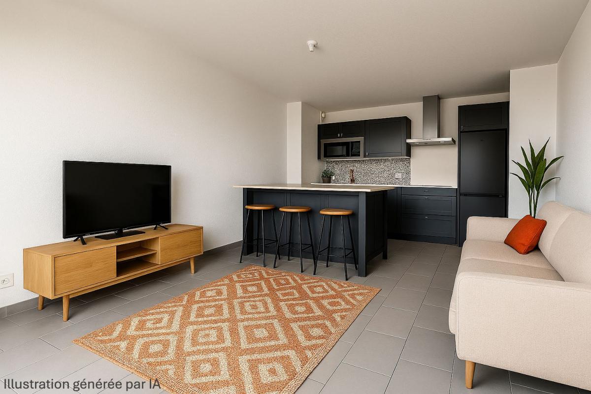 Il se compose d'un séjour avec une cuisine ouverte aménagée et équipée...