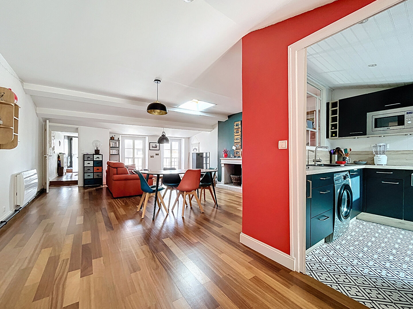 Derrière une façade empreinte d'histoire, ce bien atypique déploie ses volumes sur deux niveaux.