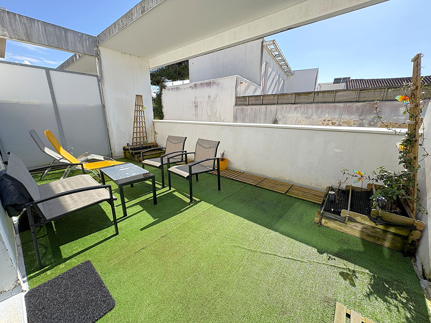 Il comprend une entrée, une jolie pièce de vie avec accès à une première terrasse privative, une cuisine indépendante ...