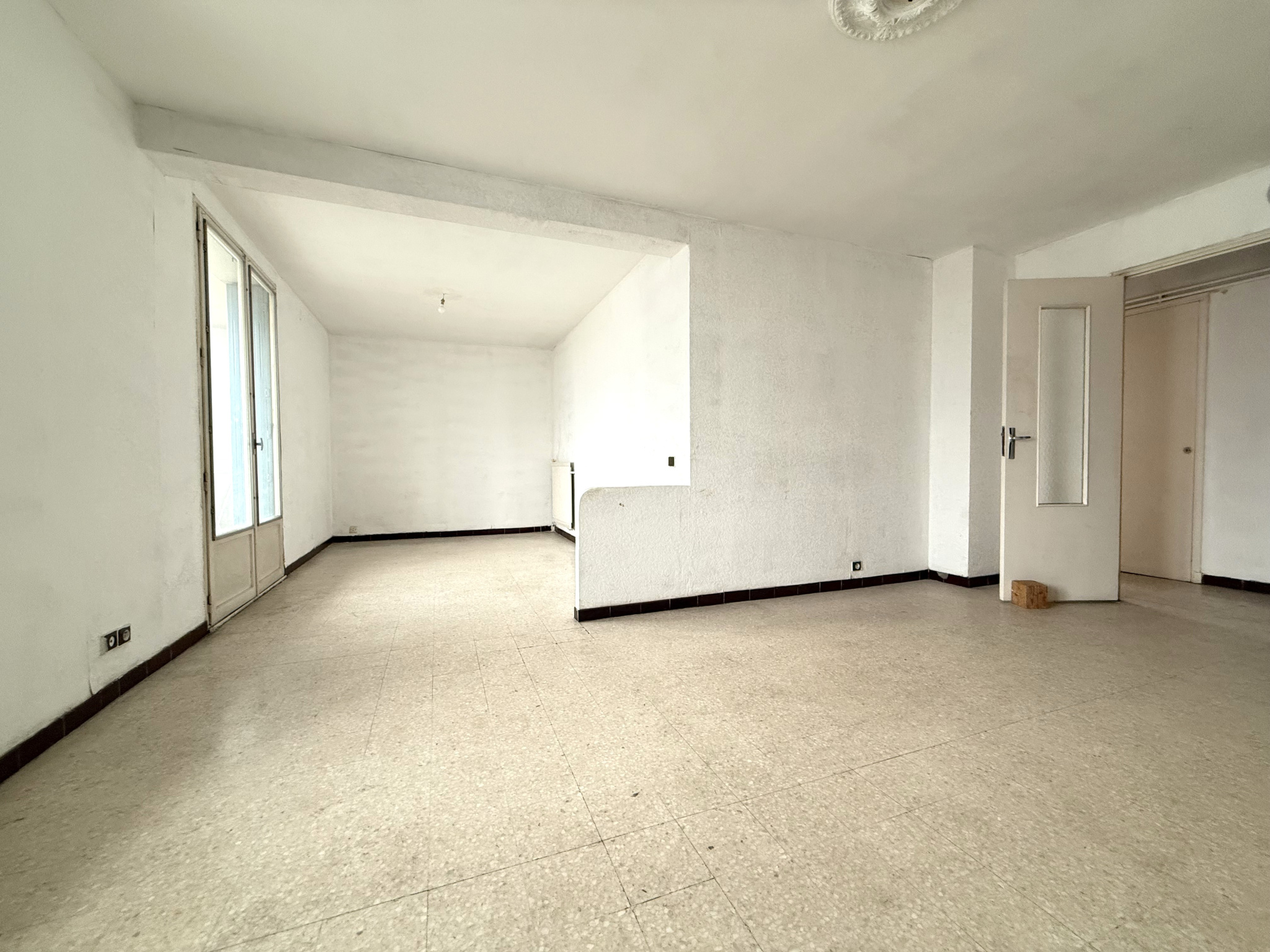 Idéalement situé en plein coeur du centre-ville, à deux pas du port de La Seyne, au 2e étage avec ascenseur d'un immeuble des années 60, découvrez ce charmant appartement de type 3/4 d'environ 71 m2.