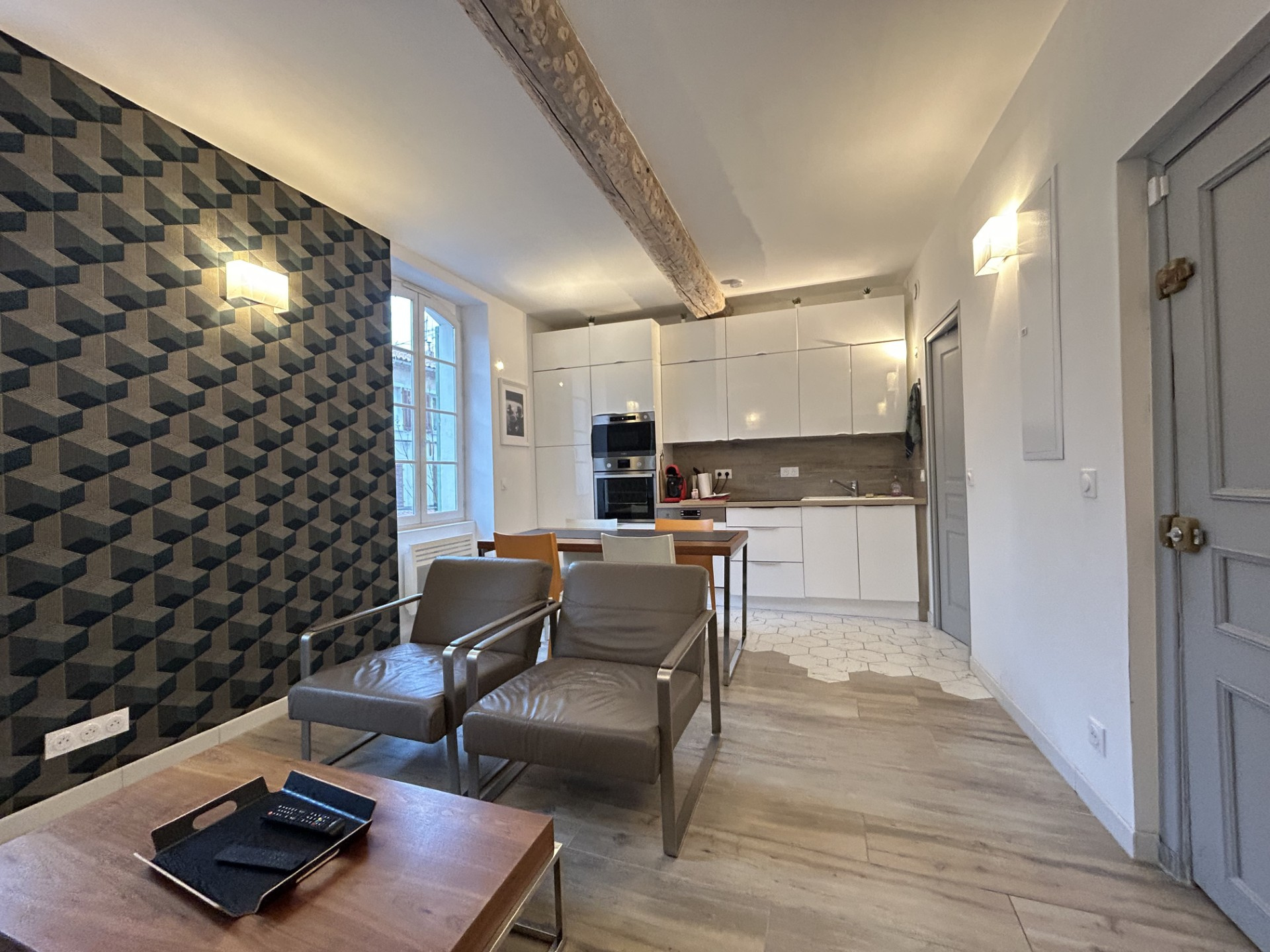 LA SEYNE - TYPE 3 - CENTRE HISTORIQUE Au deuxième étage d'une petite coopropriété faibles charges, un appartement rénové comprenant cuisine ouverte sur un séjour lumineux, deux chambres, salle de bains avec WC, climatisation réversible, velux et insert.