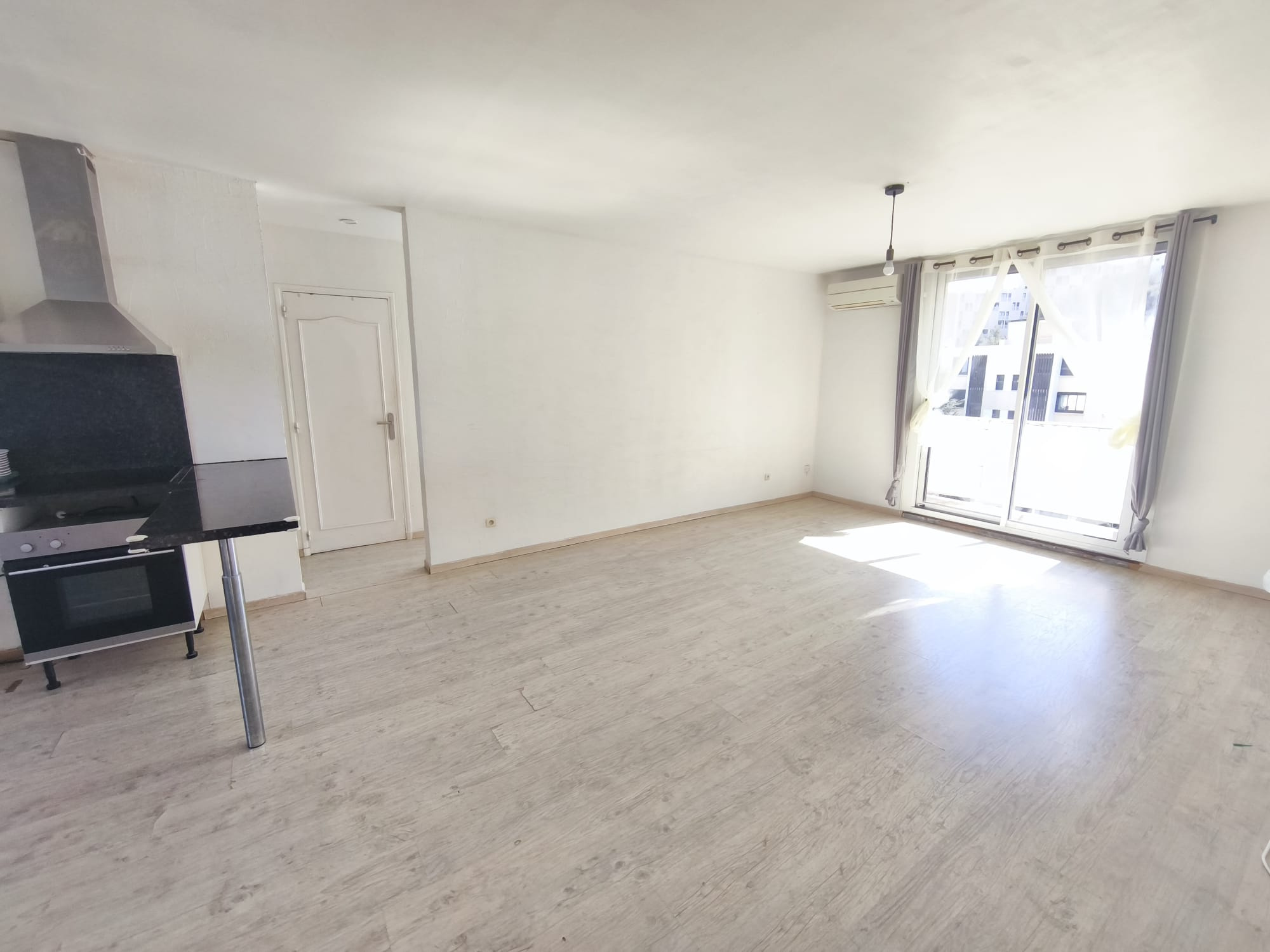 LA SEYNE - TYPE 3 - CENTRE HISTORIQUE Au deuxième étage d'une petite coopropriété faibles charges, un appartement rénové comprenant cuisine ouverte sur un séjour lumineux, deux chambres, salle de bains avec WC, climatisation réversible, velux et insert.