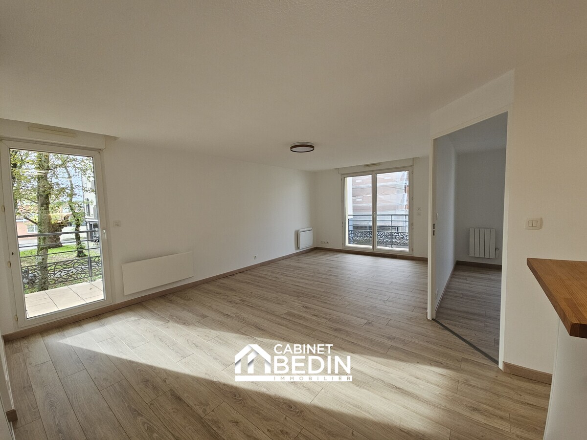 LA TESTE - APPARTEMENT T3 - Situé en copropriété récente, dans un cadre verdoyant, appartement de type T3 en rez de chaussée, comprenant une entrée avec placard, un séjour avec cuisine ouverte aménagée et équipée, deux chambres, une salle de bains, des wc sé...