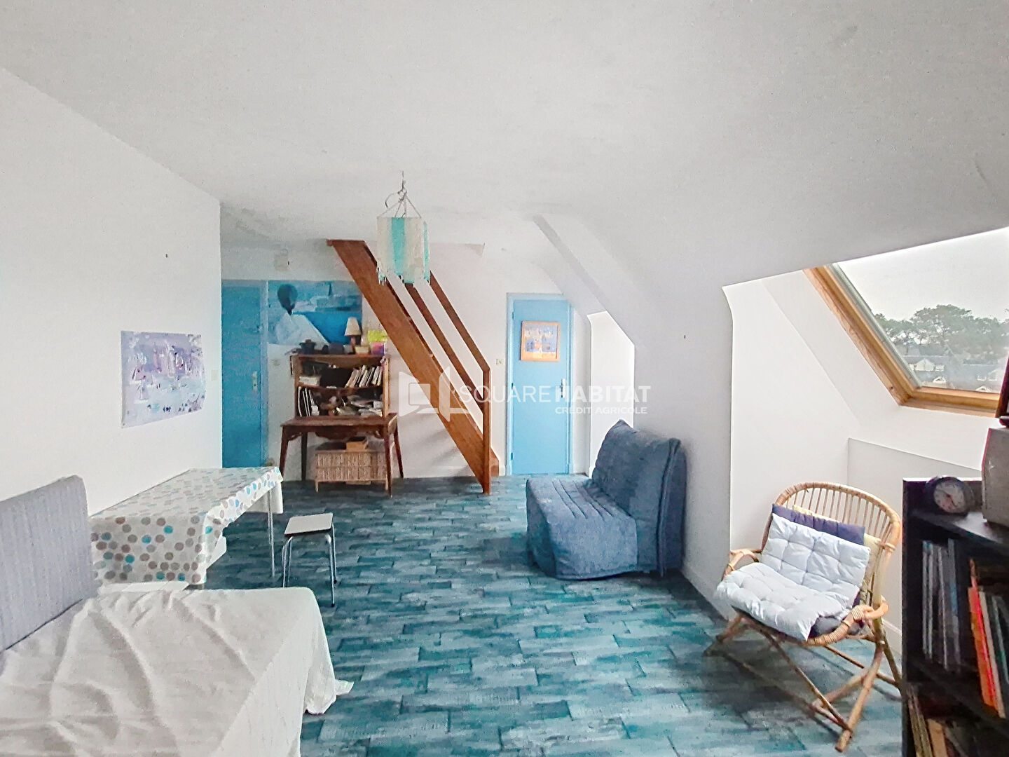 En EXCLUSIVITÉ, LA TRINITE SUR MER 56470 - Vue dégagée sur le port, les commerces et les quais à pied, cet appartement en duplex d'environ 50 m² au sol disposant au premier niveau d'une entrée avec placard, une chambre. A l'étage, un déga...