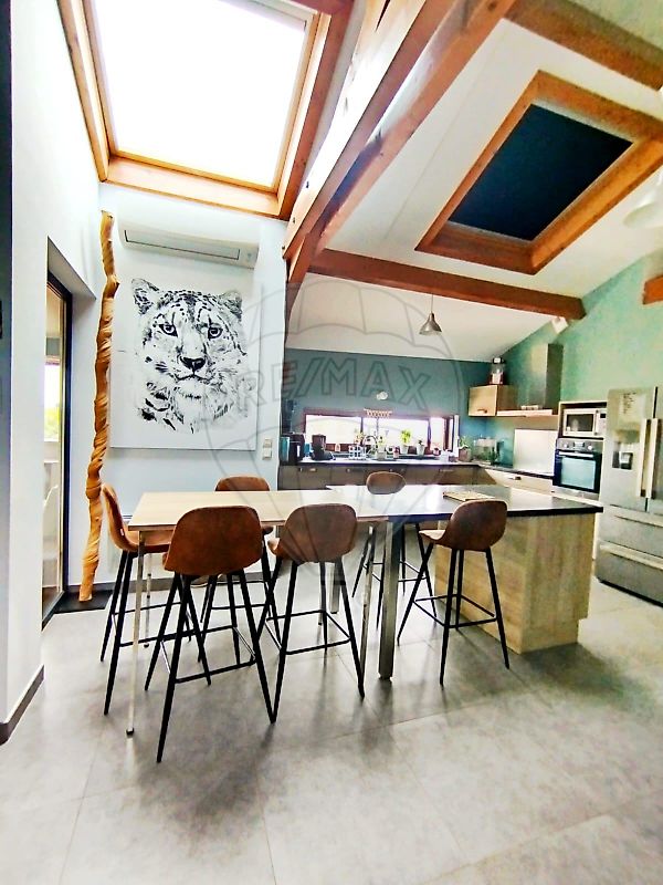 Centre du village , dans petite copropirété au dernier étage duplex de 132 m2 avec de beaux volumes, cuisine- sejour -salon 60m2 , cellier, toilettes , à l' étage trois chambres, salle de bain acec wc, coin bureau , Chauffage cental gaz de ville. Faibles ...