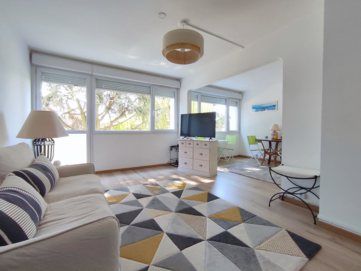 Belle pièce de vie lumineuse de 43m² donnant sur une jolie terrasse bien exposée.