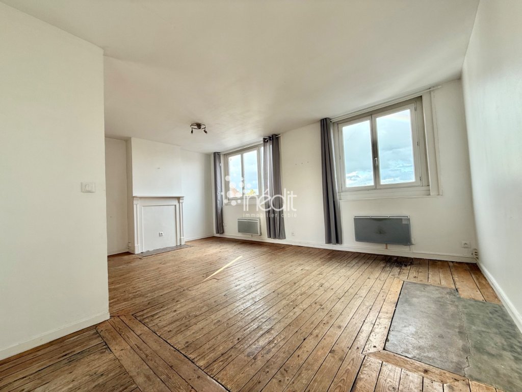 Cet appartement situé au 1er étage, est composé d'une entrée, d'une très belle pièce de vie avec plancher ancien, cuisine ouverte.