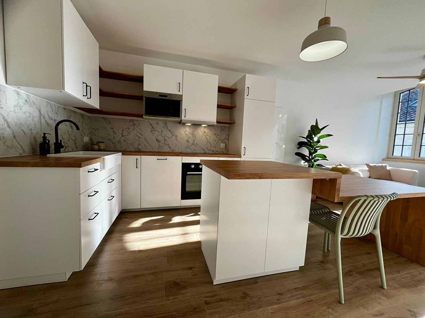 Une grande pièce à vivre lumineuse avec cuisine ouverte ...