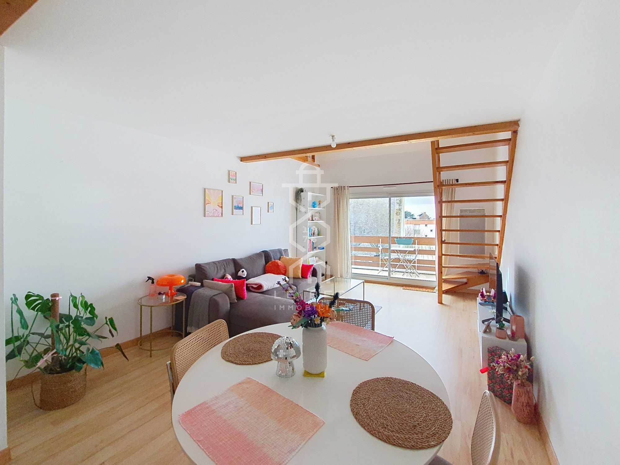 Larmor-Plage, situation privilégiée en plein bourg et à deux pas des plages pour cet appartement duplex de 63.40 m² au deuxième étage d'une petite copropriété de quatre logements..