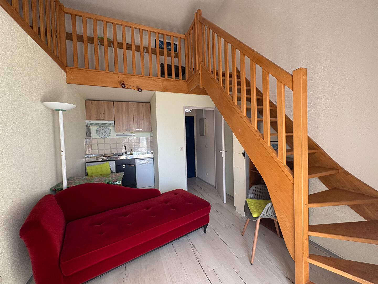 Joli appartement T2 mezzanine avec une très belle terrasse d'environ 12 m² dans un secteur recherché proche de l'étang et à seulement quelques petites minutes à pied de la plage. Séjour avec coin cuisine, chambre, salle d'eau/wc. Une mezzanine o...